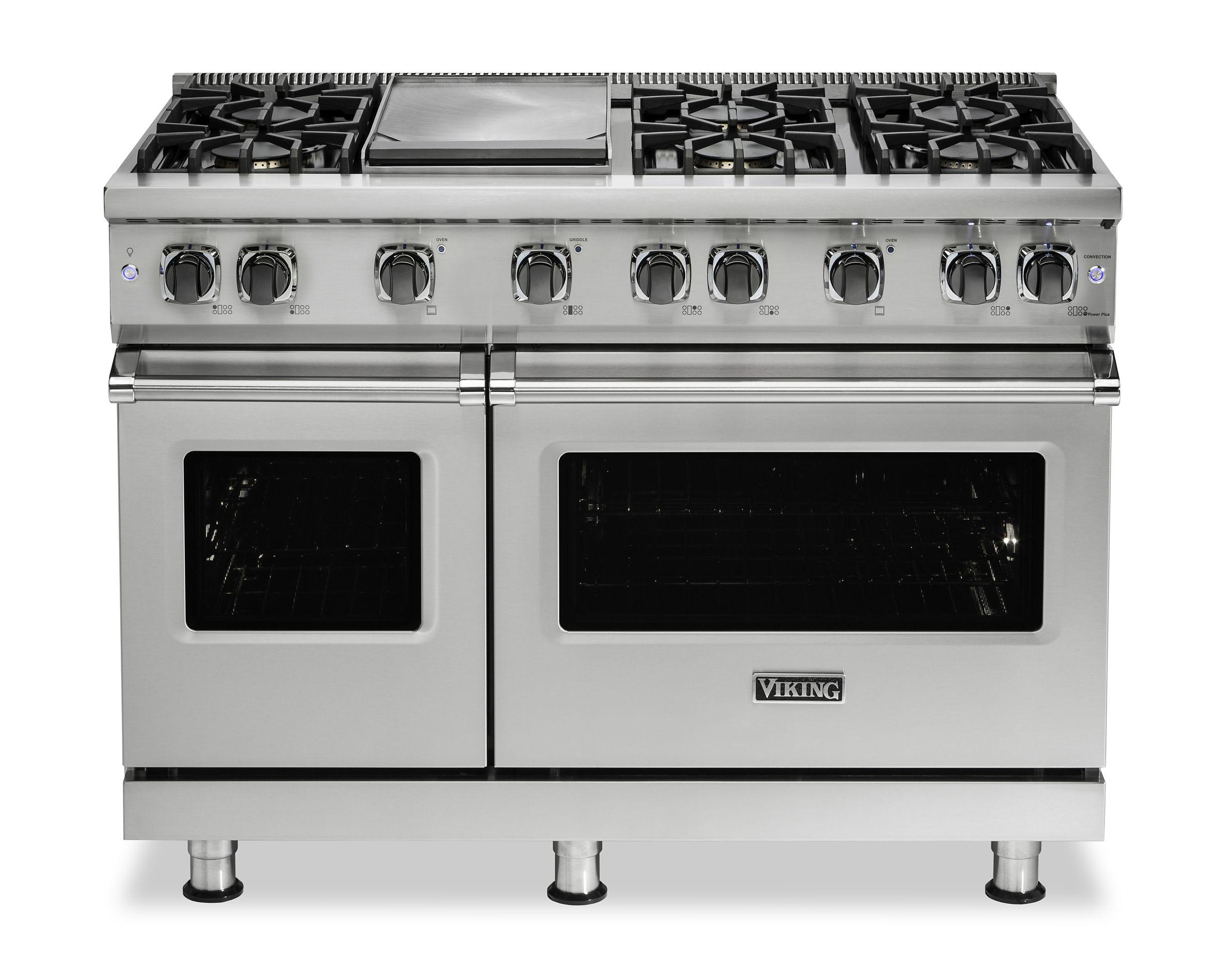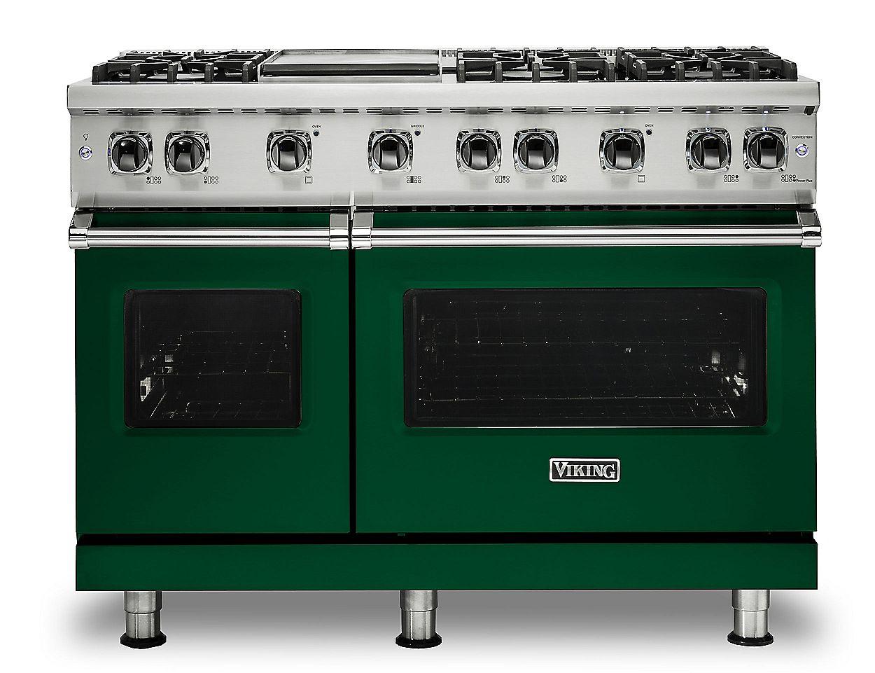 The brand Viking VGR5486GIV combines professional-grade engineering and striking style in this 48‑inch freestanding gas range finished in Iron Slate. It includes 6 sealed VSH™ burners for precise, responsive flame control and a built-in 15,000 BTU stainless steel griddle for flexible, high-heat cooking. Dual ovens offer a combined 5.7 cu ft total capacity and utilize ProFlow™ convection to ensure even baking and roasting across both cavities. The cooktop boasts continuous cast-iron grates for seamless pot transfer, and thoughtful features like soft-close oven doors and rugged metal control knobs add durability and chef-level handling. The bold Iron Slate finish makes a modern statement in any upscale kitchen.