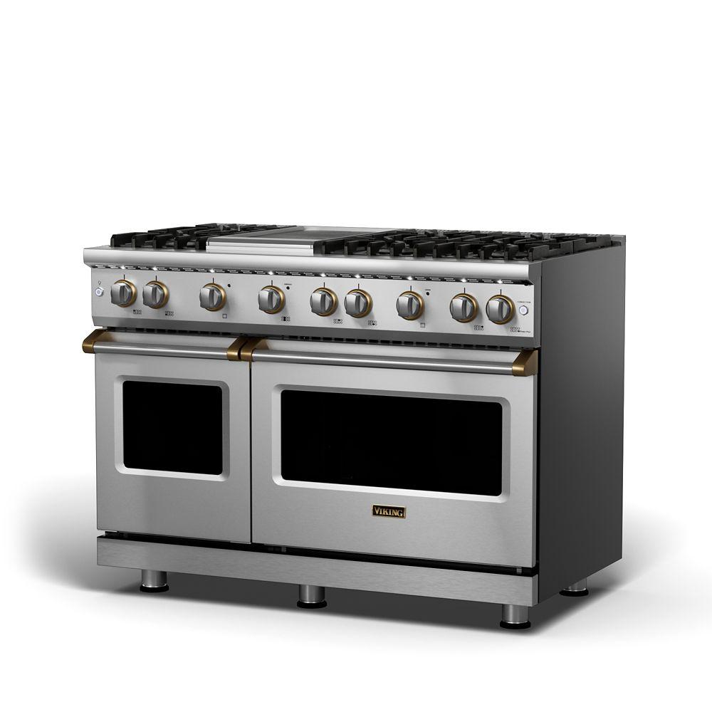 The brand Viking VGR5486GMA offers a premium 48-inch freestanding professional gas range engineered for serious home chefs. Outfitted with six 15,000 BTU VSH™ Pro Sealed Burners, this unit delivers powerful, precise heat control for everything from delicate simmering to rapid boiling. The integrated 12-inch thermostatically controlled griddle provides consistent heat for breakfast, searing, and more. It features a 4.0 cu. ft. primary oven and a 2.1 cu. ft. secondary oven, both equipped with Vari-Speed Dual Flow™ Convection for even heat distribution. A durable stainless steel finish, heavy-duty knobs, and porcelainized cooking surface round out this unit’s professional-grade build, while the soft-close oven doors and halogen lighting enhance functionality and convenience.