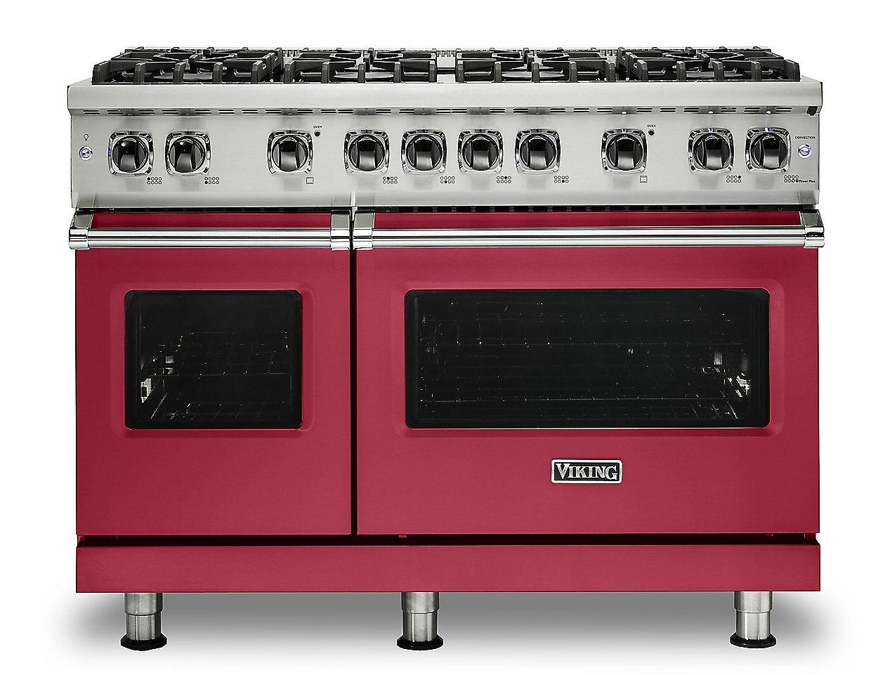The brand Viking VGR5488BVA is a statement-making 48-inch freestanding gas range finished in bold Vintage Aqua. It offers six sealed burners with high output and simmer functions, a ProFlow™ convection oven with self-clean, heavy-duty continuous grates, infrared broiler, halogen lighting, and SureSpark™ ignition—designed for show-stopping kitchens.