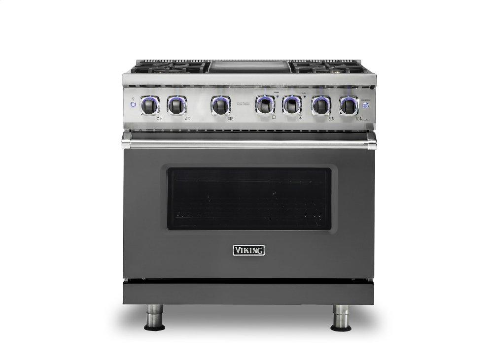 The brand Viking VGR73624GDG delivers powerful performance and design with this 36" Gas Range in Graphite Gray. It includes four VSH™ sealed burners, a 12” thermostatic griddle, and a 5.1 Cu. Ft. ProFlow™ convection oven. With Gourmet-Glo™ infrared broiling, continuous grates, and automatic re-ignition, this range is built to meet the needs of demanding home cooks in a stunning finish.