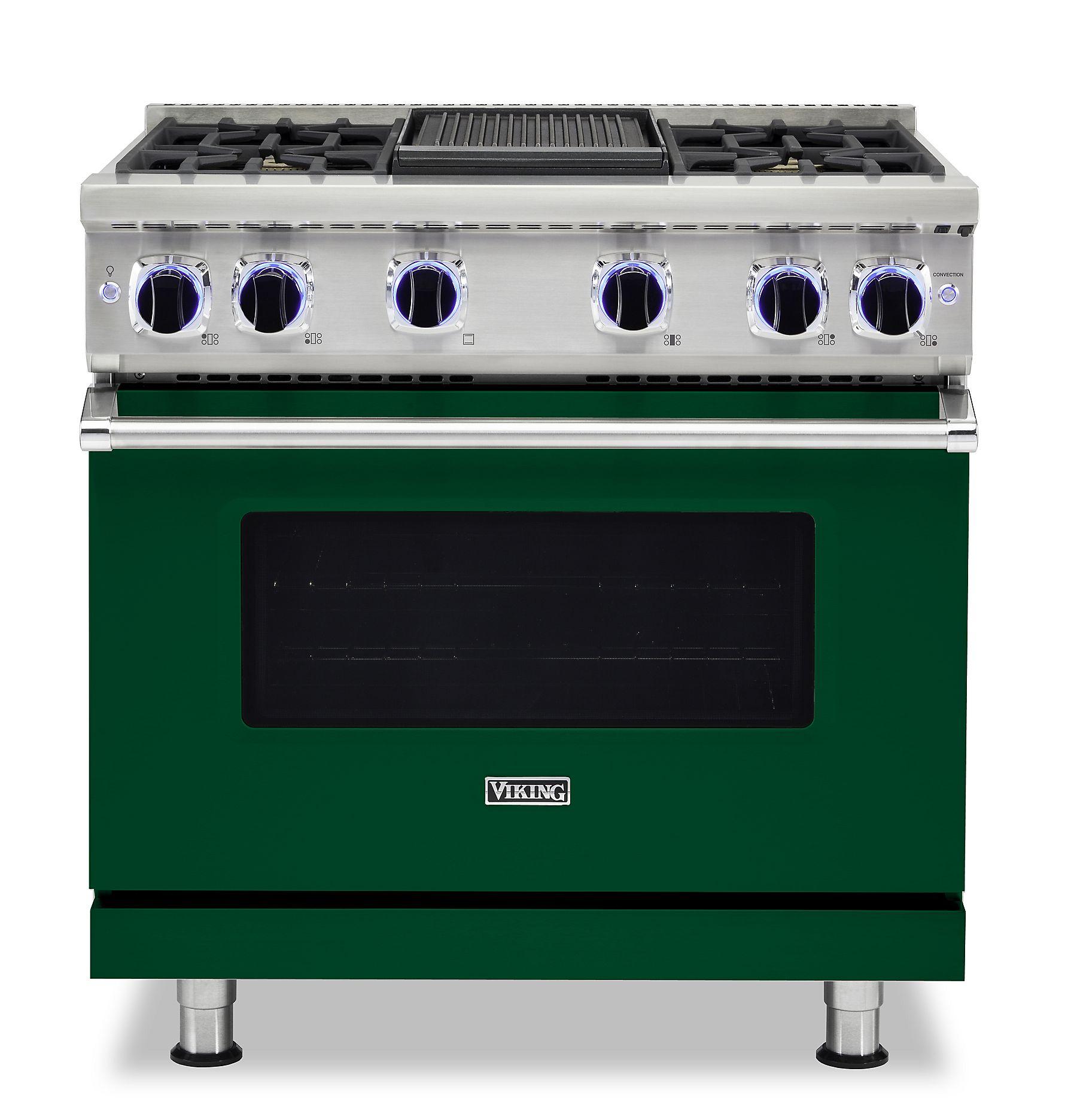 The brand Viking VGR73624GIV offers a professional-grade cooking experience in this 36" Sealed Burner Gas Range. Featuring four VSH™ sealed burners and a 12” thermostatic griddle, it delivers powerful and versatile heat distribution. The 5.1 Cu. Ft. oven uses ProFlow™ convection technology for even baking and roasting, while the Gourmet-Glo™ broiler offers intense searing performance. Designed with automatic re-ignition, continuous grates, and durable stainless steel, this range is perfect for serious home chefs.