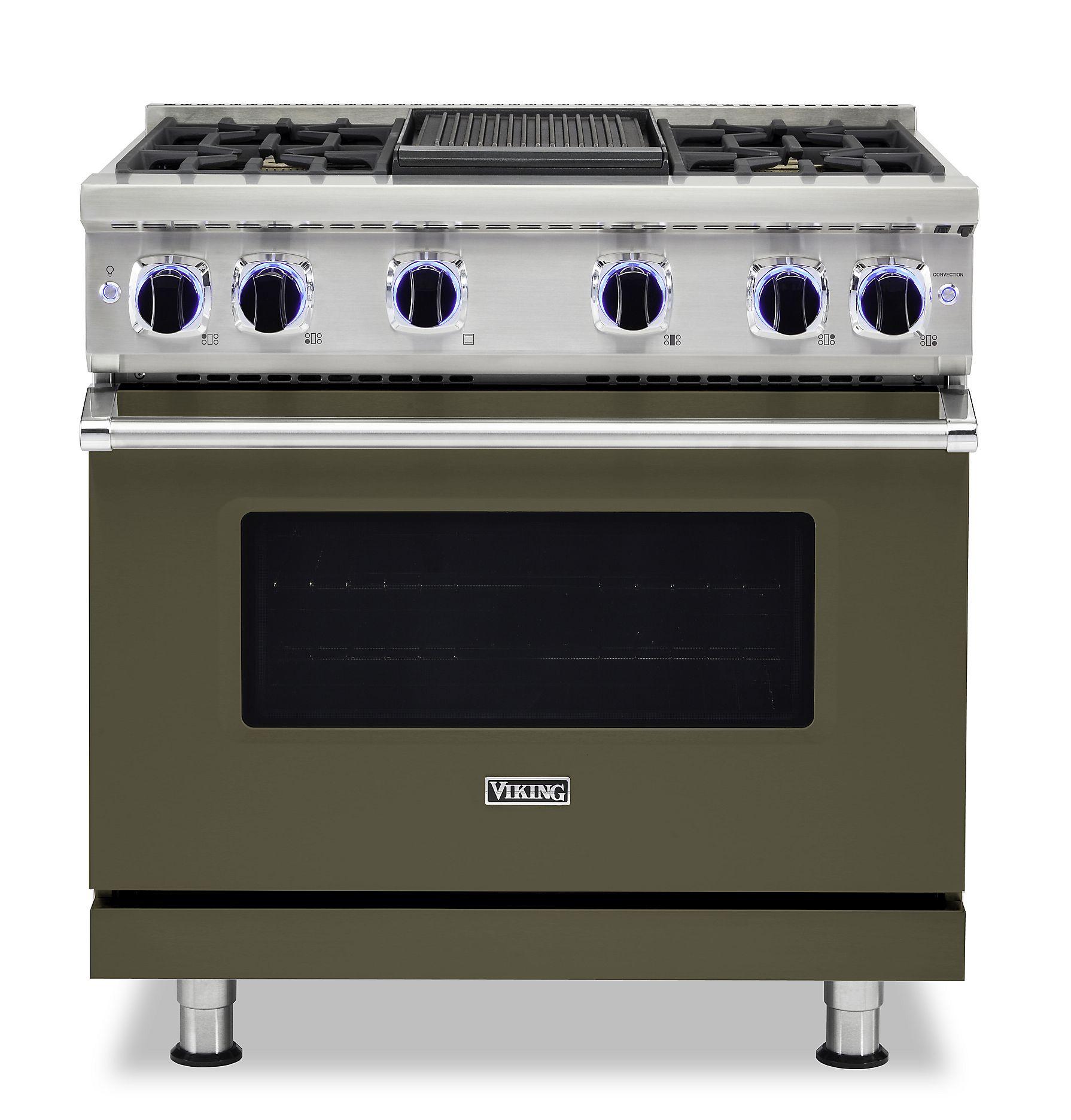 The brand Viking VGR73624GMA merges performance and style in a versatile 36‑inch range. It includes six sealed burners with continuous cast‑iron grates, plus a central 12‑inch griddle for flat-top cooking utility. The 5.1 cu ft convection oven with ProFlow™ airflow and Gourmet‑Glo™ infrared broiler provides consistent baking and searing. Pro-level features like SureSpark™ ignition, TruGlide™ full‑extension racks, GentleClose™ door, and SoftLit™ LED knob lighting deliver professional performance in a premium stainless steel package.