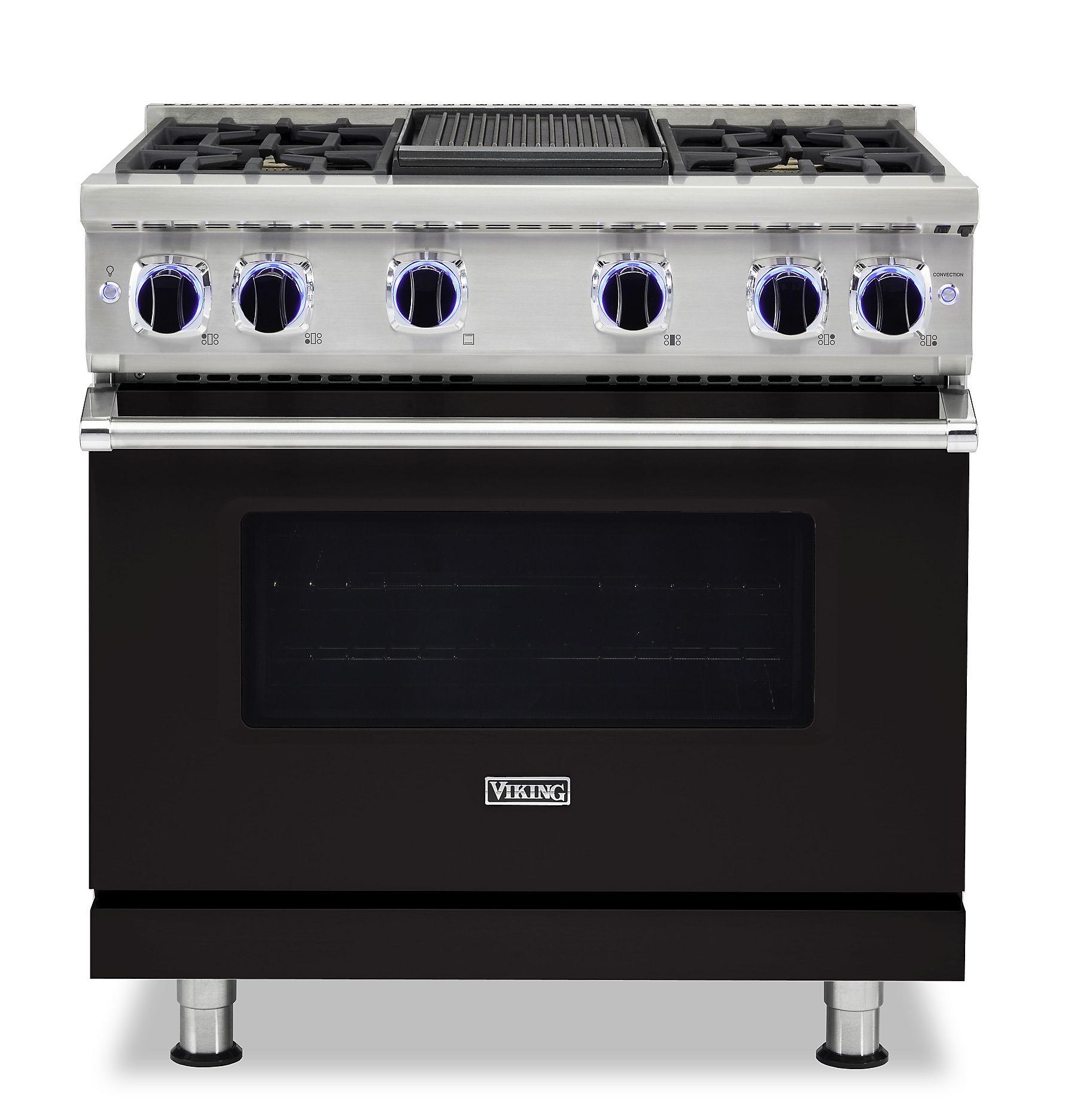 The brand Viking VGR73624GON brings professional-grade cooking into the home with six sealed burners and continuous cast‑iron grates for stable heat distribution, accompanied by a central 12‑inch griddle perfect for breakfast and grilled dishes. Its spacious 5.1 cu ft convection oven utilizes ProFlow™ airflow and houses a Gourmet‑Glo™ infrared broiler for even baking and powerful searing. Enhanced with SureSpark™ ignition, TruGlide™ full‑extension racks, GentleClose™ door, and SoftLit™ LED knob lighting, this stainless steel designed range offers durability and chef-level performance.