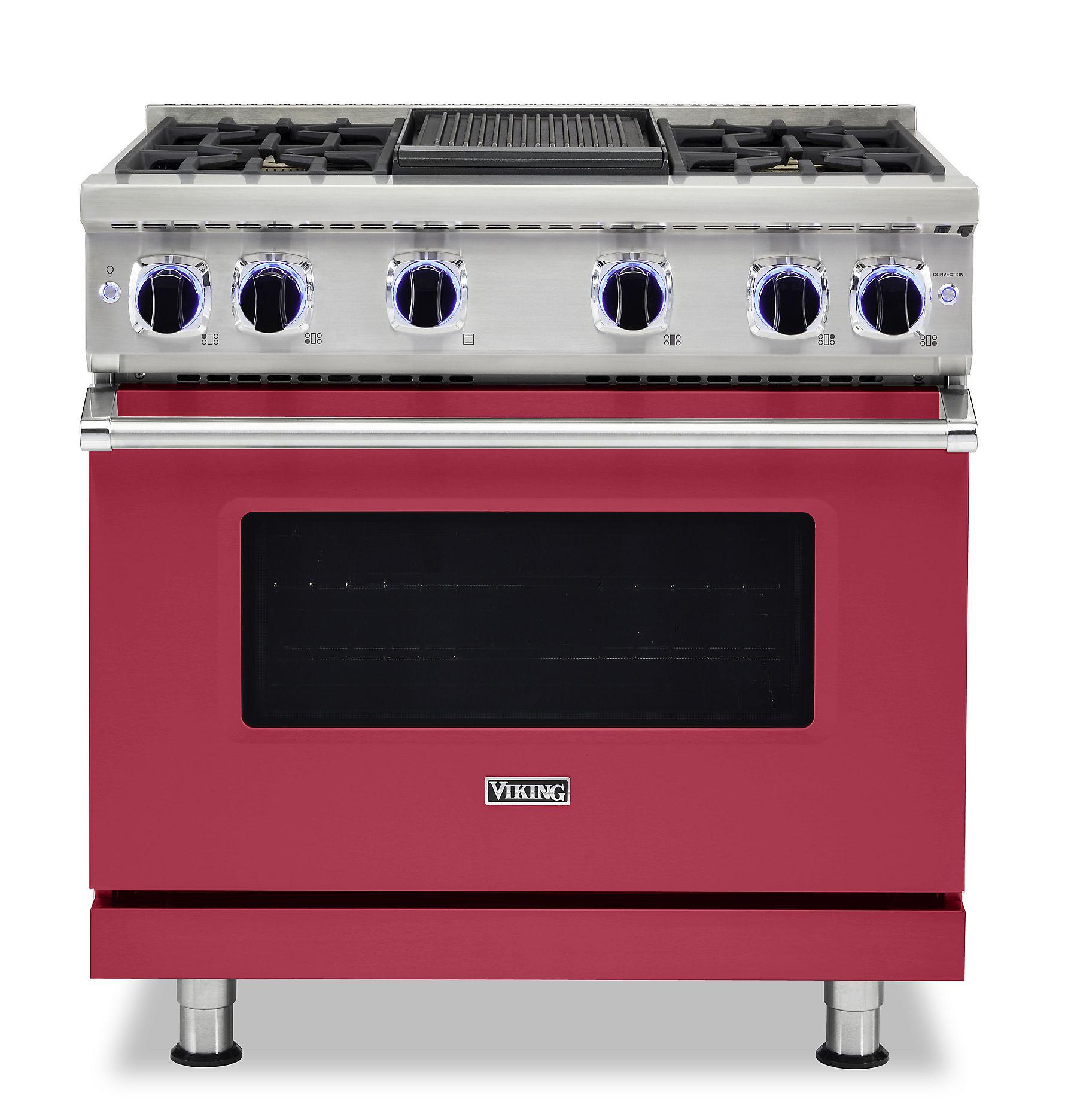 The brand Viking VGR73624GVA delivers commercial-grade performance in a compact 36‑inch format. It includes six open burners—ranging from powerful high-output to precise simmer—over continuous cast‑iron grates for seamless pan movement. The central 12‑inch griddle adds flat-top flexibility, while the 5.1 cu ft convection oven with ProFlow™ airflow ensures even baking and roasting results. Professional features such as SureSpark™ ignition, TruGlide™ full-extension racks, GentleClose™ oven door, and SoftLit™ LED knob lighting combine with stainless steel aesthetics to offer serious cooking power in mid-size kitchens.
