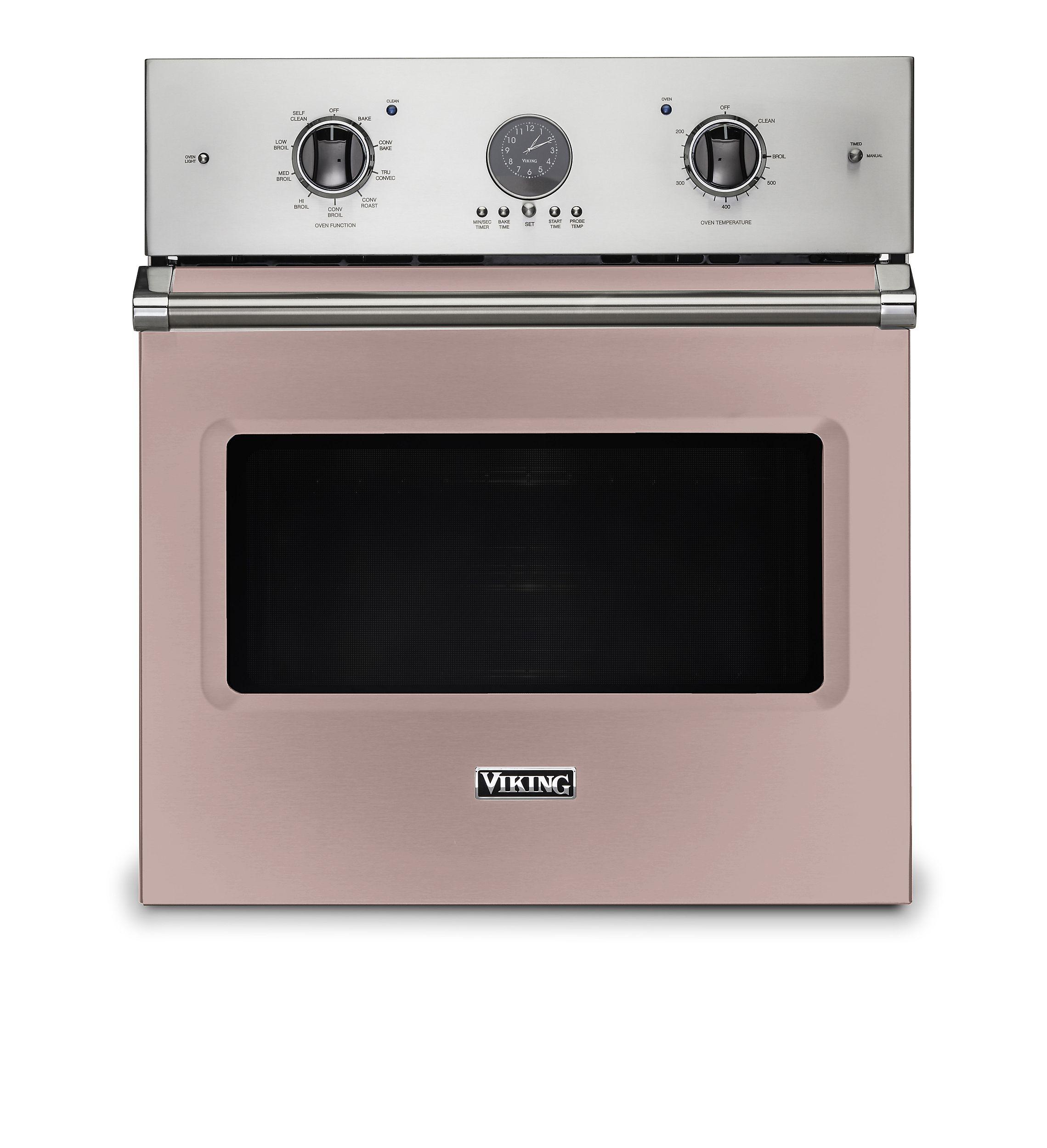 The brand Viking VSOE527BH merges elegant Blush styling with professional cooking performance. It includes a generous 4.1 cu ft capacity, convection heating for even baking, bright LED interior lighting for food monitoring, and a sleek smooth-face door for seamless integration. Enhanced by soft-close hinges, satin-edge racks, and an intuitive LCD control panel, this oven delivers chef-grade quality wrapped in a gentle, sophisticated hue.