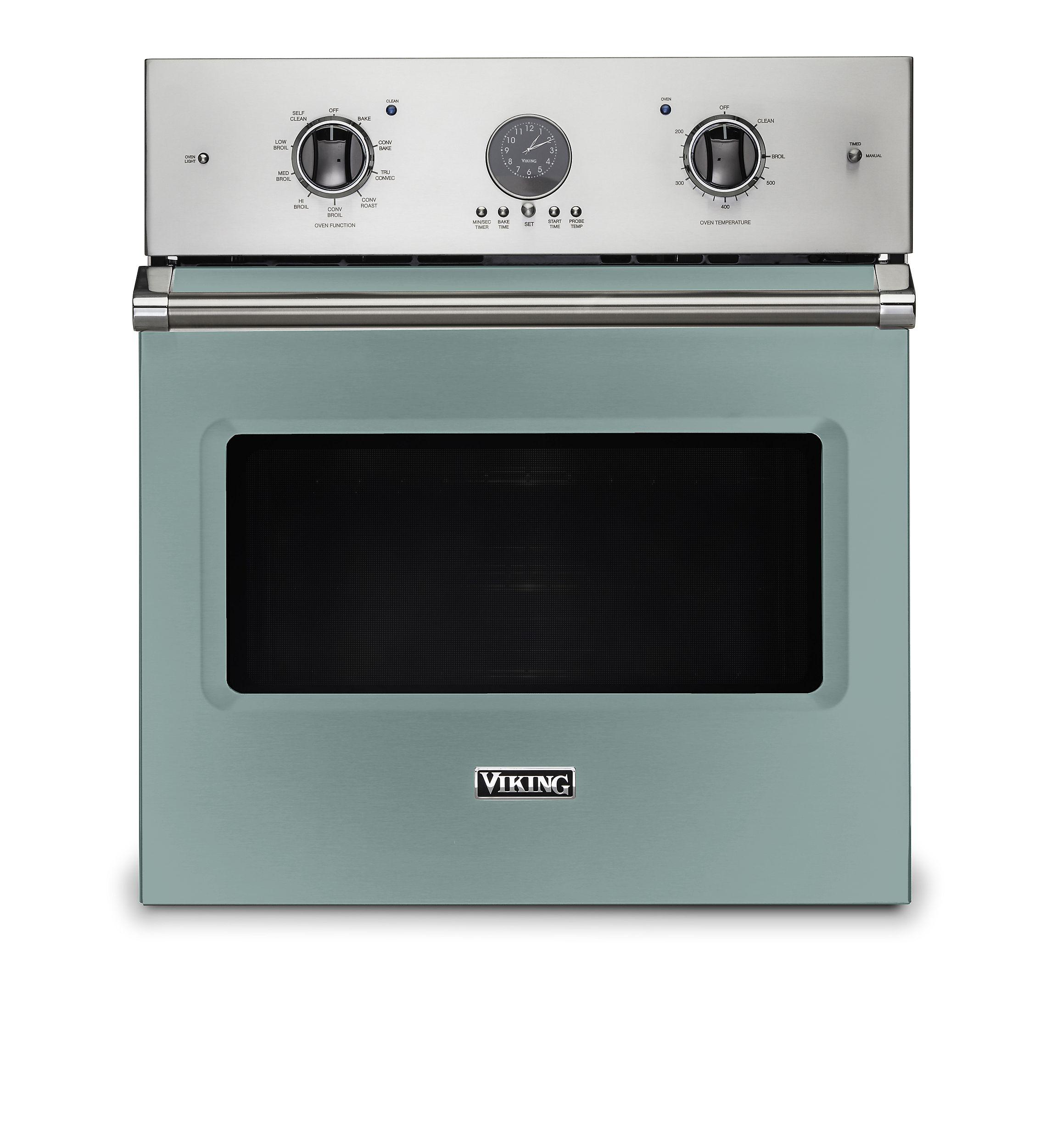 The brand Viking VSOE527SP offers a compact yet powerful 27-inch single wall oven in elegant Plum. Equipped with TruConvec™ convection system, Rapid Ready™ preheat, self-cleaning mode, and halogen lighting, it delivers even heat and stunning aesthetics perfect for smaller spaces or vertical installations.