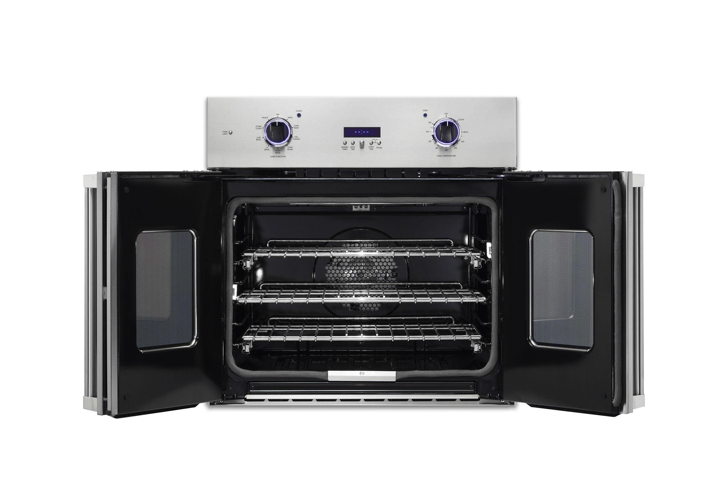 The brand Viking VSOF7301SS is a sophisticated 30‑inch French‑door electric wall oven in classic Stainless Steel. It offers a 5 cu ft interior, True Convection™, self‑clean cycle, SureSpark™ bake element, hidden bake design, halogen lighting, intuitive touchscreen, Sabbath mode, and LP/NG convertible wiring—crafted for luxury kitchens.