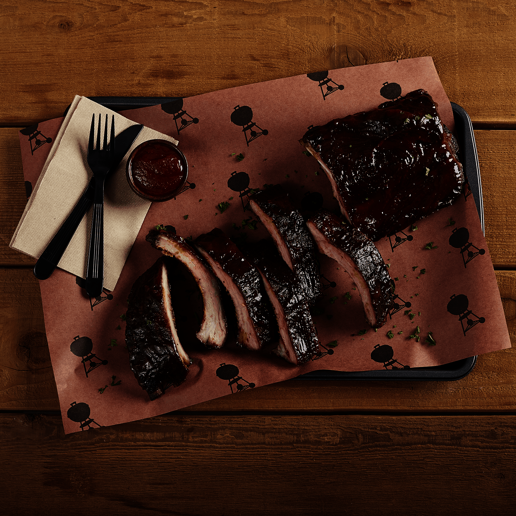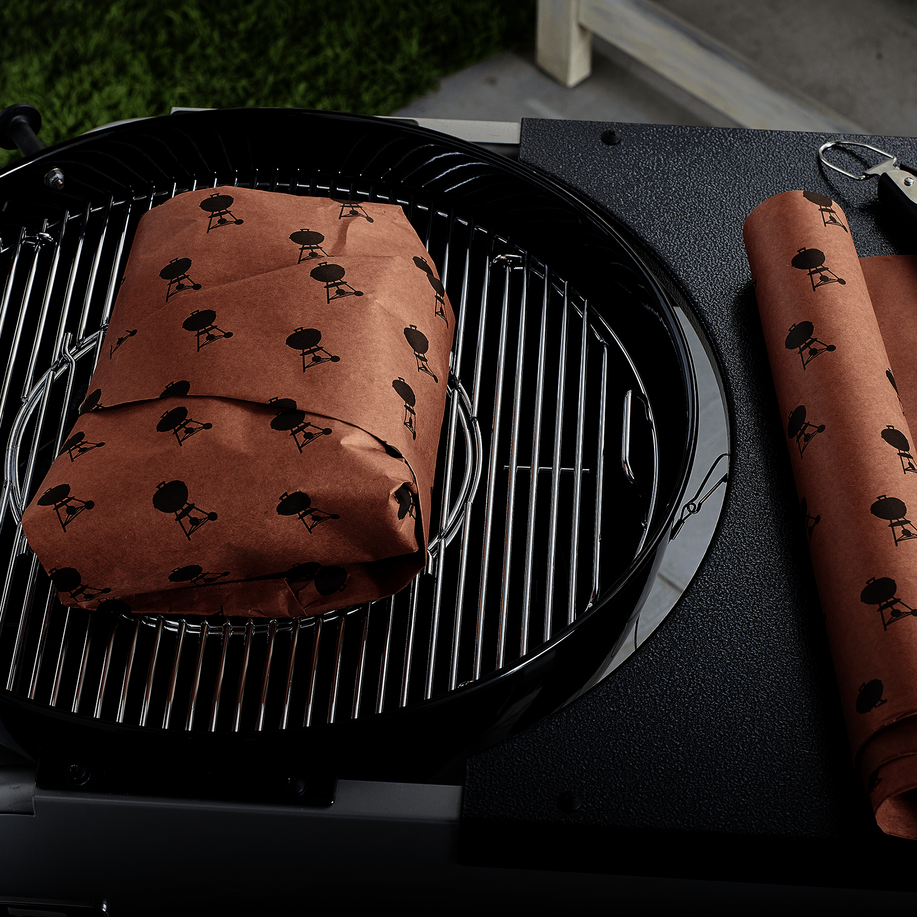 Serve moist, flavorful meat, with the perfect bark by wrapping it in Weber Butcher Paper. Wrapping your meat at the tail end of a low and slow smoke helps to retain moisture. Weber Butcher Paper is also stamped with Weber Kettles for a fun presentation.