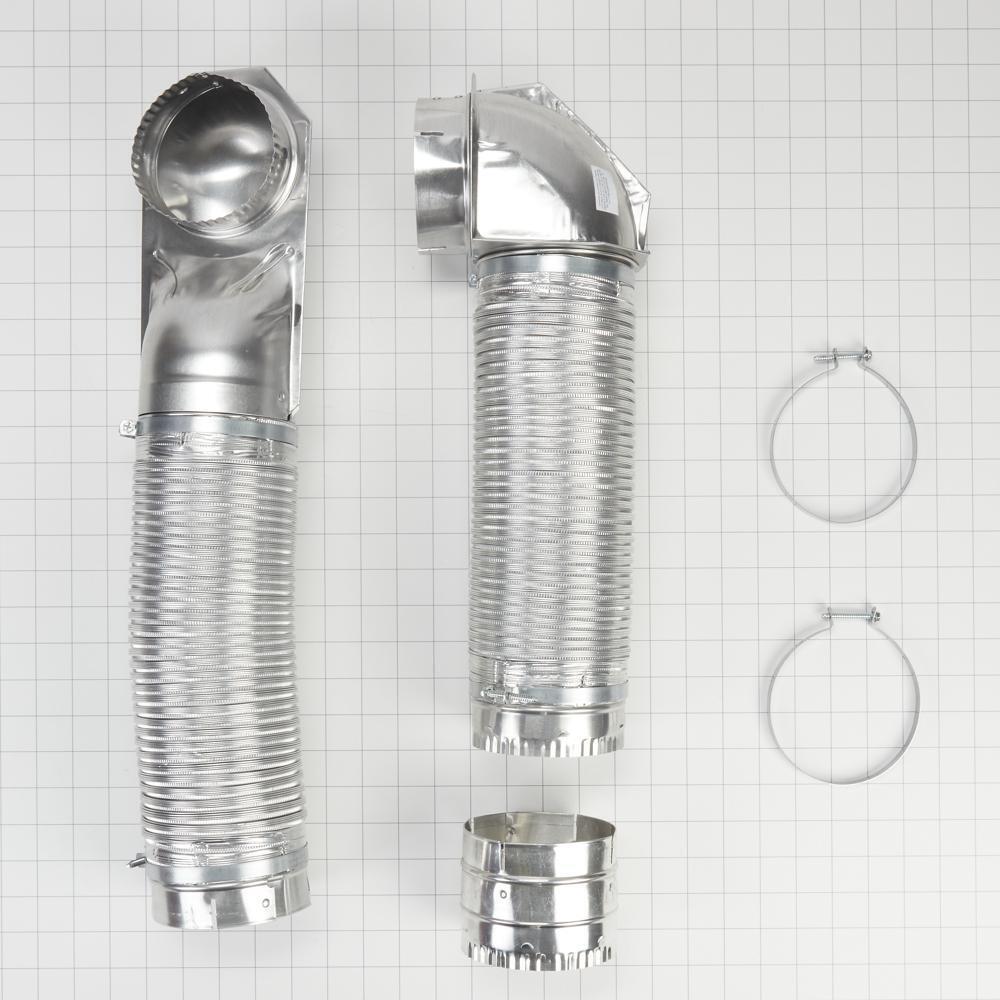 This Dryer Telescoping Vent Periscope measures 18"L to 29"L and is designed to use in small laundry spaces with 2-1/2" clearance. It features one male snap-lock fitting and one extra long draw-band collar for easy installation; excess length can be trimmed to fit. The beveled ends of the item prevent interference with or damage to floors and wall. This is an accessory that can be used across several brands; check to see if your model number is compatible. Installing this accessory will require no disassembly or repair experience. You must unplug the dryer or shut off the house circuit breaker for the appliance before installing.