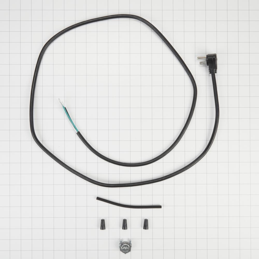 The Dishwasher Power Supply Kit is a 125V power supply cord that measures 6'L. The power cord connects the dishwasher to the wall outlet and supplies electricity to the appliance. The package includes (1) 6' dishwasher 90 degree power cord, (1) metal strain relief, (3) wire nuts, and installation instructions. This kit is for close clearance connections. The strain relief is for added safety and the cord has a space saving one-prong plug. This accessory is designed to be used with select dishwasher models; check to see if your model number is compatible. Installing this accessory will require basic hand tools, some disassembly of the appliance and novice repair experience. You must unplug the appliance or shut off the house circuit breaker before installing this accessory. Also make sure you turn off the water supply under the sink. Helpful Tip: We also recommend using affresh(R) Dishwasher Cleaner (item W10282479) to help reduce limescale and mineral build-up that can affect your dishwasher's performance. *affresh(R) brand products are owned and distributed by Whirlpool Corporation.