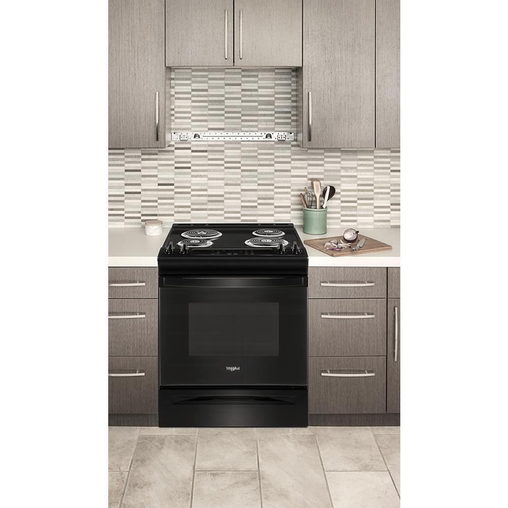 Simplify steps in your cooking process with an electric slide in range that lets you skip preheating using Frozen Bake(TM) Technology and get favorites like frozen pizza on the table quickly. It also features a high-temperature, adjustable self clean oven cycle so you can clean inside the oven without using chemicals.