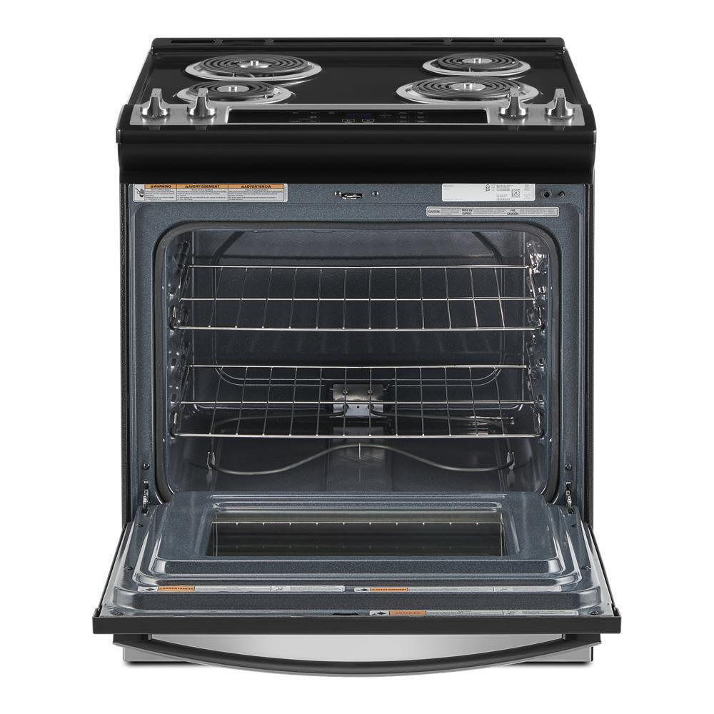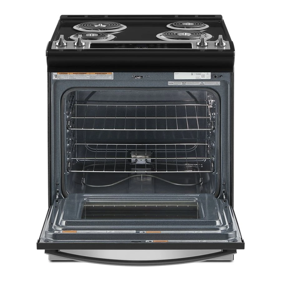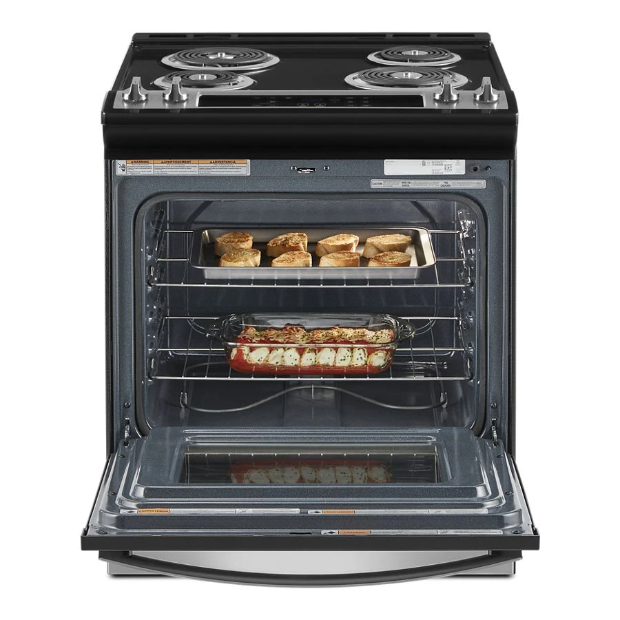 Simplify steps in your cooking process with an electric slide in range that lets you skip preheating using Frozen Bake(TM) Technology and get favorites like frozen pizza on the table quickly. It also features a high-temperature, adjustable self clean oven cycle so you can clean inside the oven without using chemicals.