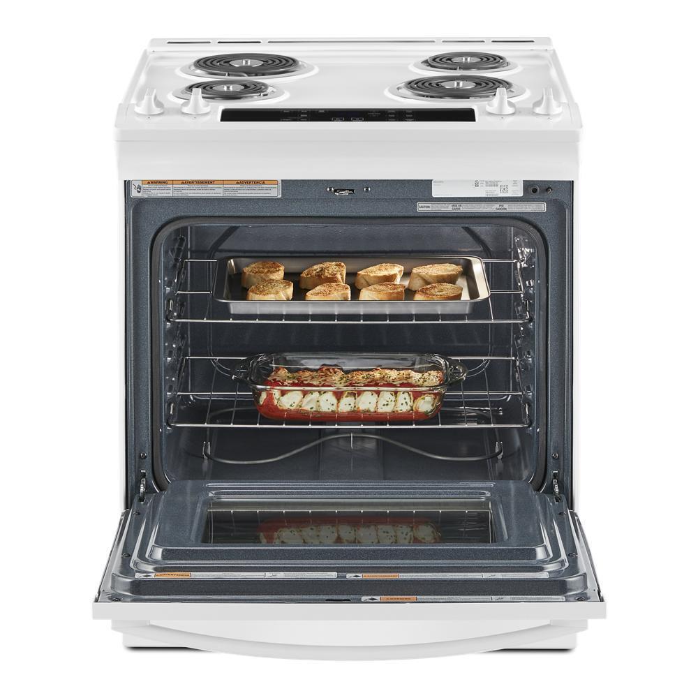 Simplify steps in your cooking process with an electric slide in range that lets you skip preheating using Frozen Bake(TM) Technology and get favorites like frozen pizza on the table quickly. It also features a high-temperature, adjustable self clean oven cycle so you can clean inside the oven without using chemicals.