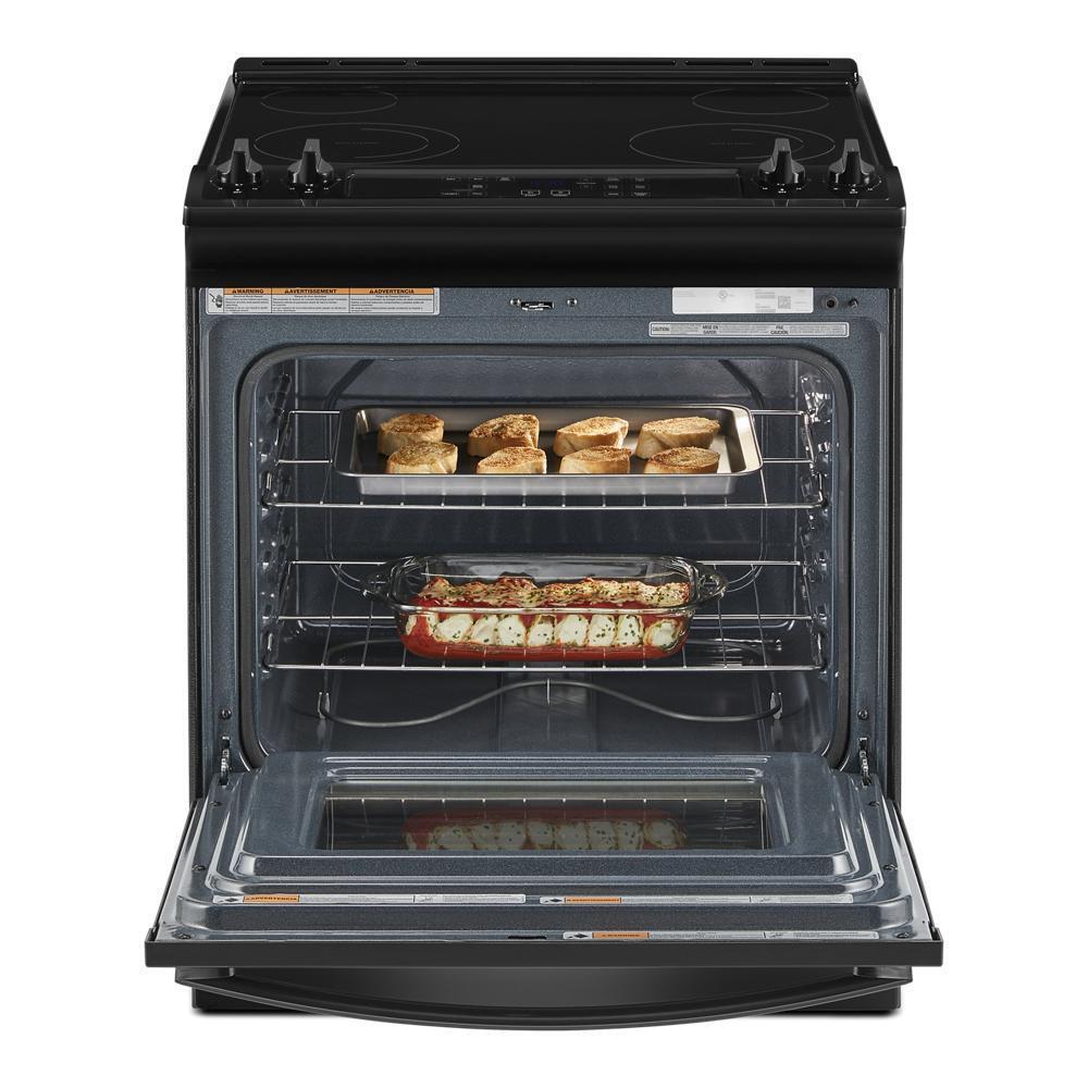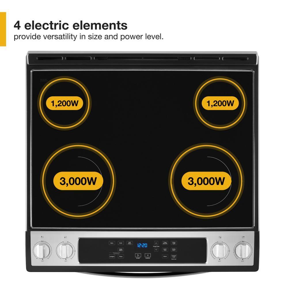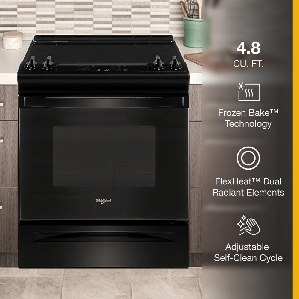 The brand Whirlpool WEE515S0LB combines modern style with reliable performance. It includes four radiant burners for versatile stovetop cooking, a convection oven for even baking, and a smooth ceramic glass cooktop that simplifies cleaning. Additional features include Frozen Bake™ technology for no-preheat frozen meals, a warm zone to keep food ready to serve, edge-to-edge grates for easy pan movement, and a storage drawer—wrapped in a bold black finish ideal for contemporary kitchens.