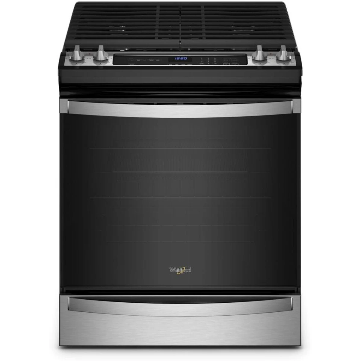 The Whirlpool WEE745H0LZ is a versatile 30-inch slide-in electric range designed to meet the demands of modern kitchens. Its generous 6.4 cu. ft. oven provides ample space for preparing large meals, while the 7-in-1 cooking modes offer flexibility to cook a variety of dishes. These modes include Air Fry, Convect Bake, Convect Broil, Frozen Bake™, Bake, Broil, and Keep Warm cycles. The Air Fry mode allows you to achieve crispy results without preheating, making it ideal for preparing healthier versions of your favorite fried foods. The True Convection Cooking system ensures even heat distribution, allowing you to bake multiple items at once without the need to rotate pans. The FlexHeat™ Triple Radiant Element offers three element sizes in one, accommodating various cookware sizes for added convenience. Cleaning is made easy with the AquaLift® Self-Cleaning Technology, which uses water and low heat to release baked-on spills without harsh chemicals. The Fingerprint-Resistant Stainless Steel finish helps maintain a clean and sleek appearance, while the Touchscreen control panel provides intuitive operation for a seamless cooking experience.