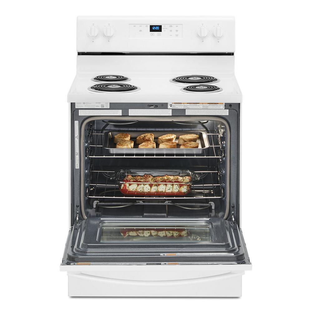 This Whirlpool(R) Electric Range helps you get dinner to the table, even on a hectic schedule. The Keep Warm setting prevents dinner from getting cold. Closed door broiling helps keep the kitchen comfortable. This self cleaning oven also allows you to avoid unintended use with an oven control lock.