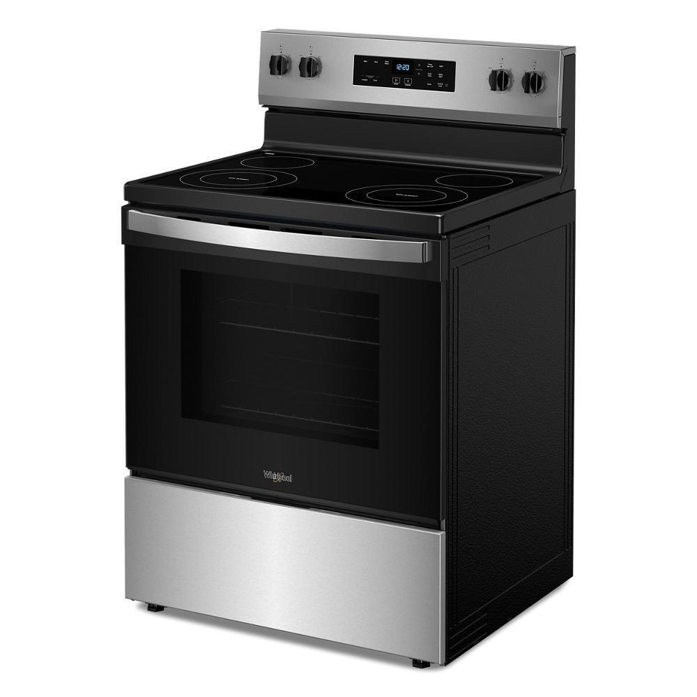 The brand Whirlpool WFES3030RS is a versatile 30-inch freestanding electric range designed to streamline your cooking experience. It boasts a spacious 5.3 cu. ft. oven equipped with a built-in temperature sensor that ensures even baking by maintaining optimal heat levels. The innovative No Preheat Mode allows you to place your food directly into the oven, adjusting the cooking time accordingly, which is ideal for frozen items like pizzas. The FlexHeat™ Dual Radiant Elements offer flexibility by combining two elements into one, enabling you to use different-sized cookware efficiently. Additionally, the oven includes a broil function to add a crispy finish to your dishes. This range is ENERGY STAR® certified, contributing to energy savings and reducing utility bills.