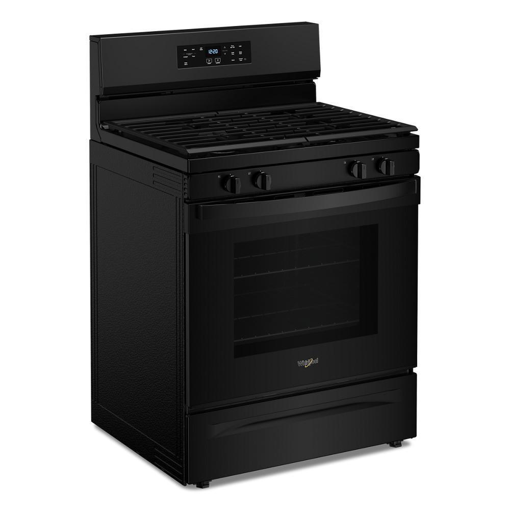 The brand Whirlpool WFGS3530RB delivers dependable cooking performance with a bold black finish. It offers four sealed burners for versatile stovetop control, a convection oven for even baking, LED oven lighting, easy-clean enamel surfaces, and a storage drawer for convenience. Designed with intuitive controls and a sleek profile, it brings elegant utility to modern kitchens.