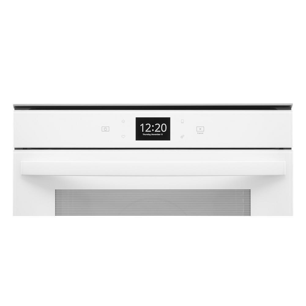 The brand Whirlpool WOS52ES4MW delivers smart cooking in a bright white finish. It features precise convection cooking for uniform results, alongside a responsive touchscreen interface with Scan-to-Cook technology for easy meal preparation. Integrated voice-control compatibility allows hands-free operation, while the soft-close door, interior oven light, and sleek white exterior bring modern convenience and style to any kitchen.