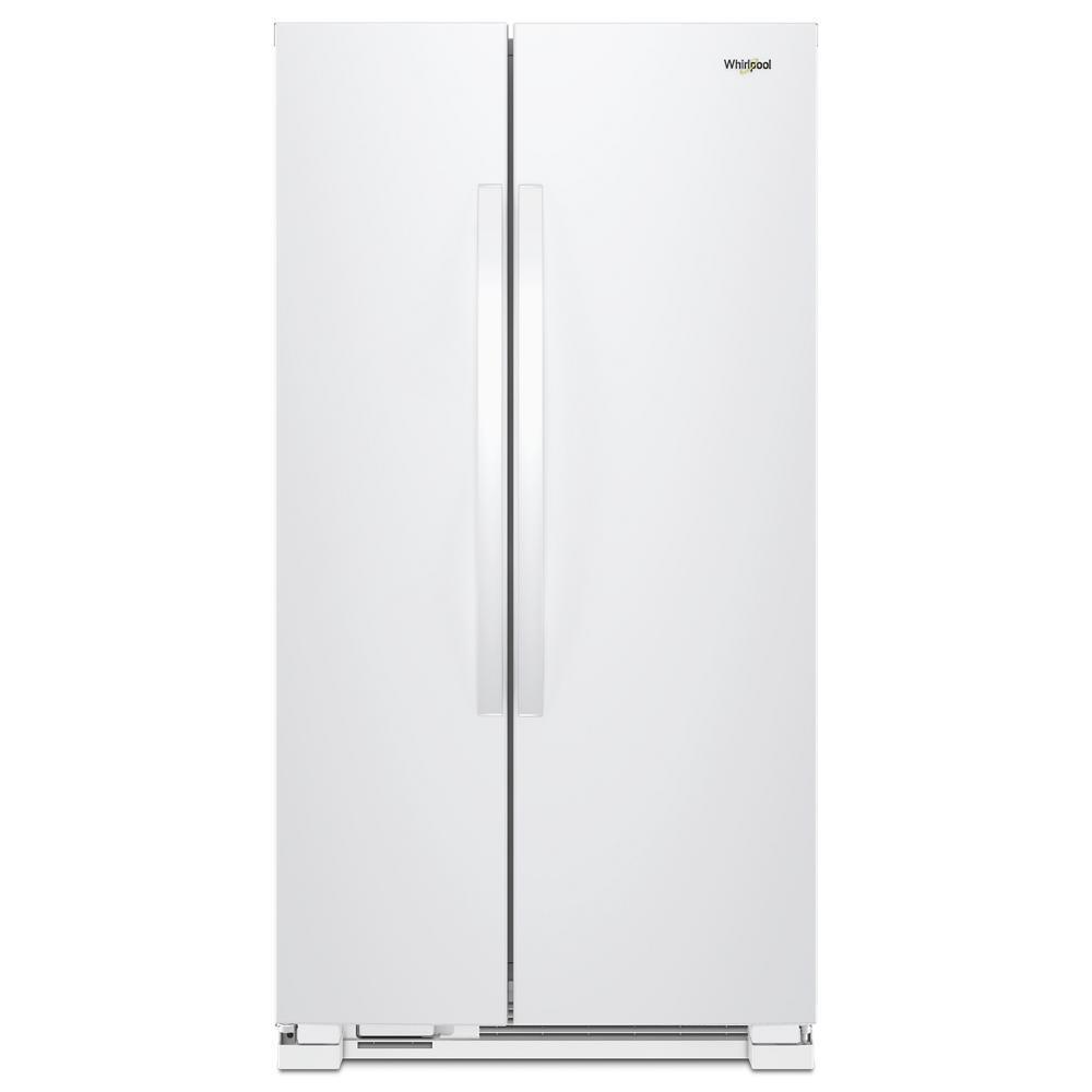 The brand WRS315SNHW side-by-side refrigerator from Whirlpool delivers a spacious and flexible food storage solution in a sleek 36-inch design. With a total capacity of 25.1 cu. ft., it offers 15.46 cu. ft. of refrigerator space and 9.61 cu. ft. of freezer capacity to meet the needs of busy households. Adjustable gallon door bins provide easy access to large items like milk and juice, while frameless glass shelves maximize storage space across the interior. A humidity-controlled crisper drawer helps keep produce fresh longer, and a full-width pantry drawer adds additional versatility. The unit features LED interior lighting for clear, energy-efficient visibility, adaptive defrost for consistent cooling, and front electronic controls for easy temperature management. Designed for practical function and everyday convenience, the refrigerator also includes hidden hinges, an optional factory-installed icemaker kit, and a clean white finish that blends seamlessly into any kitchen.