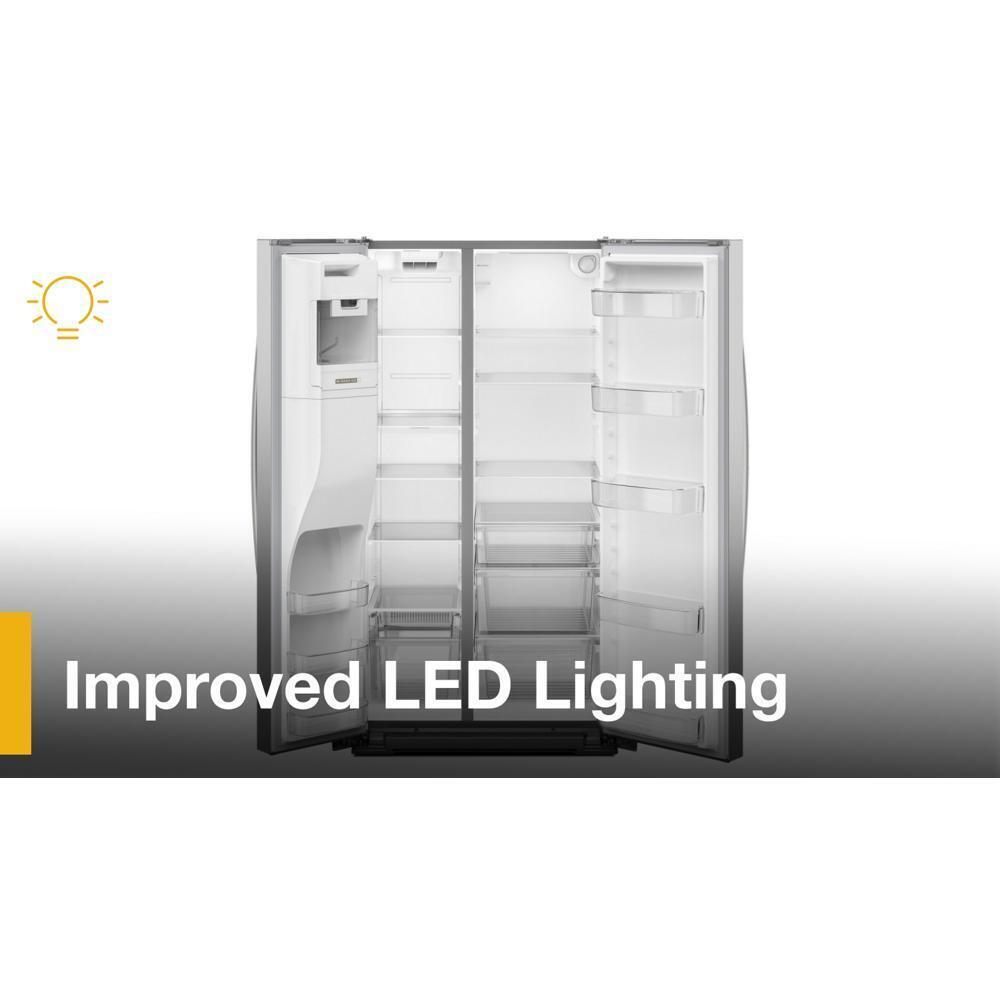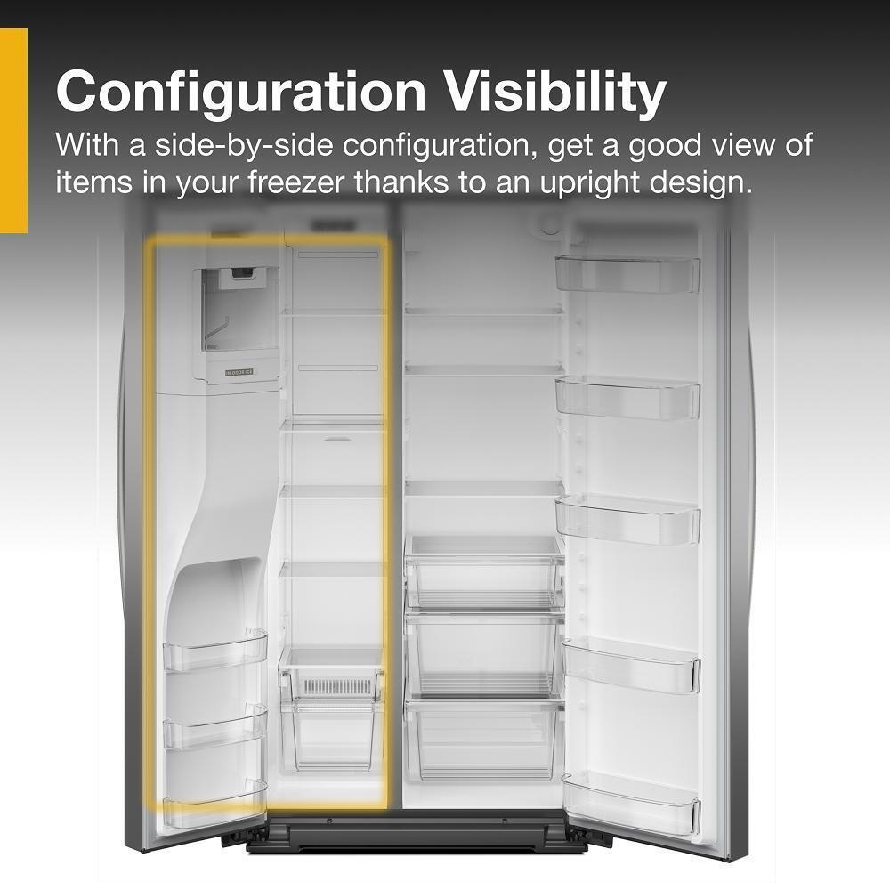 A high quality refrigerator your family can trust. Whirlpool brand refrigerators have the lowest repair rate among side by side refrigerators*, so you can focus on caring for your family, not your appliance. It helps prevent freezer burn with the TruCool(TM) Temperature Management System that senses and adapts to the ideal temperature for food. The Humidity-Controlled Crisper keeps fruits and vegetables fresh so you always have healthy snacks on hand. New, improved LED refrigerator lighting helps keep you from losing food and letting it go to waste. With its side-by-side configuration, you can see everything in your freezer thanks to an upright design. No more digging for what you need. *Claim compares Whirlpool branded refrigerators to GE, Frigidaire, Samsung and LG. Based on service required data, Q2 2022-Q4 2023, Traqline - The Stevenson Company