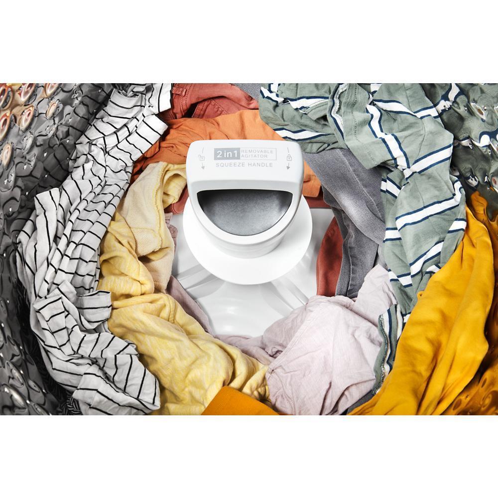 The brand Whirlpool WTW8127LW is a high-efficiency top load washer designed to meet the needs of modern households. It boasts a flexible 5.2–5.3 cu. ft. capacity, allowing you to wash more than 2 baskets of clothes in a single load. The 2-in-1 Removable Agitator provides the option to choose between traditional agitation or impeller wash action, offering versatility for different laundry needs. The Load & Go™ Dispenser lets you skip adding detergent to every load, saving time and effort. The Pretreat Station+ includes a dual-temperature faucet and brush, enabling easy access to tools for pretreating stains. The washer also features smart capabilities, allowing you to control and monitor your laundry remotely. The full-width slow-close glass lid provides a clear view of the wash action and adds a touch of elegance to your laundry room. With a high spin speed of 850 RPM, this washer ensures efficient water extraction, reducing drying time and energy consumption.