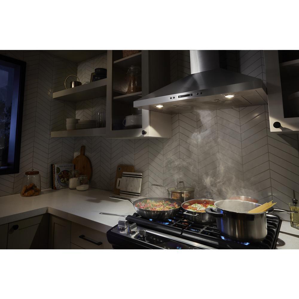 The Whirlpool WVW93UC0LS 30 Inch Chimney Wall Mount Range Hood delivers effective and stylish kitchen ventilation. Featuring a 400 CFM motor, this hood quickly removes smoke, odors, and grease from the cooking area. Its three-speed fan settings provide customizable airflow, while LED task lighting ensures a well-lit cooktop. The stainless steel design offers a contemporary look and durability, and the centrally located electronic touch controls allow for easy operation. This wall-mounted unit also includes a dishwasher-safe grease filter and is convertible to recirculating, making it adaptable for various kitchen setups. Designed for performance and elegance, it’s an ideal addition to modern home kitchens.