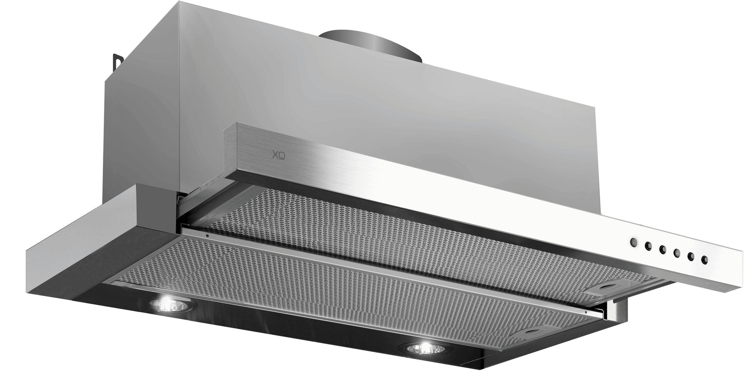 The XOC may look like other minimal profile range hoods but that is where the similarity ends. This powerful, versatile unit glides flush with your cabinets to reveal only a thin stainless steel band when closed but unlike other systems, the blower and lighting are fully functional with the filter visor open or shut.