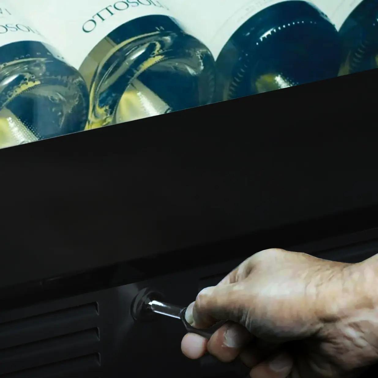 located in the stainless steel toe every XO undercounter model comes with a secure door lock to keep uninvited guests out.