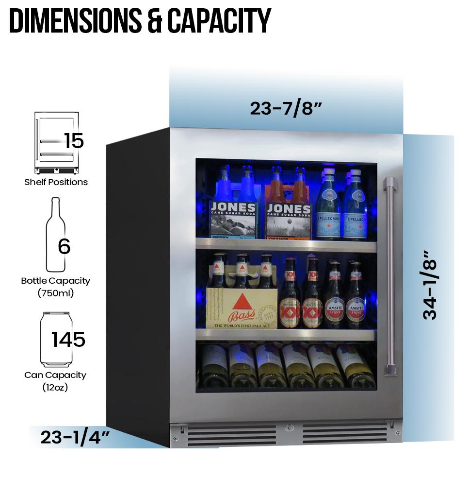 Easy to Store - Easy to Find. Your XO undercounter Beverage Center is the quick, convenient way to keep all your favorite beverages close at hand. The clear glass shelves fully extend while loaded to let you see and find everything at a glance. And because they easily adjust to 15 different positions, you can quickly configure the beverage center into your beverage center.