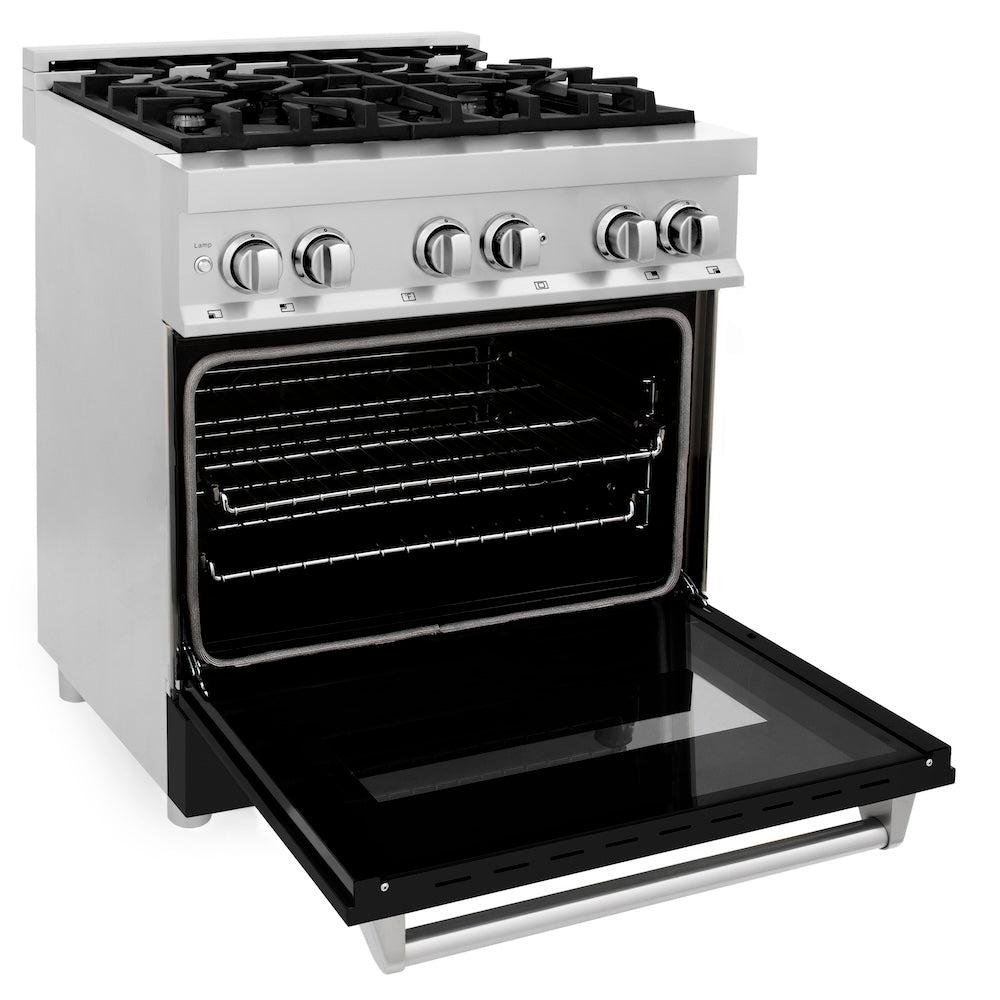 Luxury isn't meant to be left desired ? it's meant to be attainable. The ZLINE 30 in. 4.0 cu. ft. Legacy Dual Fuel Range with 4 Burner Gas Cooktop and Electric Convection Oven in Stainless Steel and Black Matte Door (RA-BLM-30) pairs a powerful gas cooktop with 4 Italian-crafted burners, an electric convection oven, and a beautiful black matte door with a Landscape window design. With innovative features designed to enhance your kitchen's capability, ZLINE Legacy Dual Fuel Ranges provide a professional culinary experience by pairing unmatched performance with timeless style.