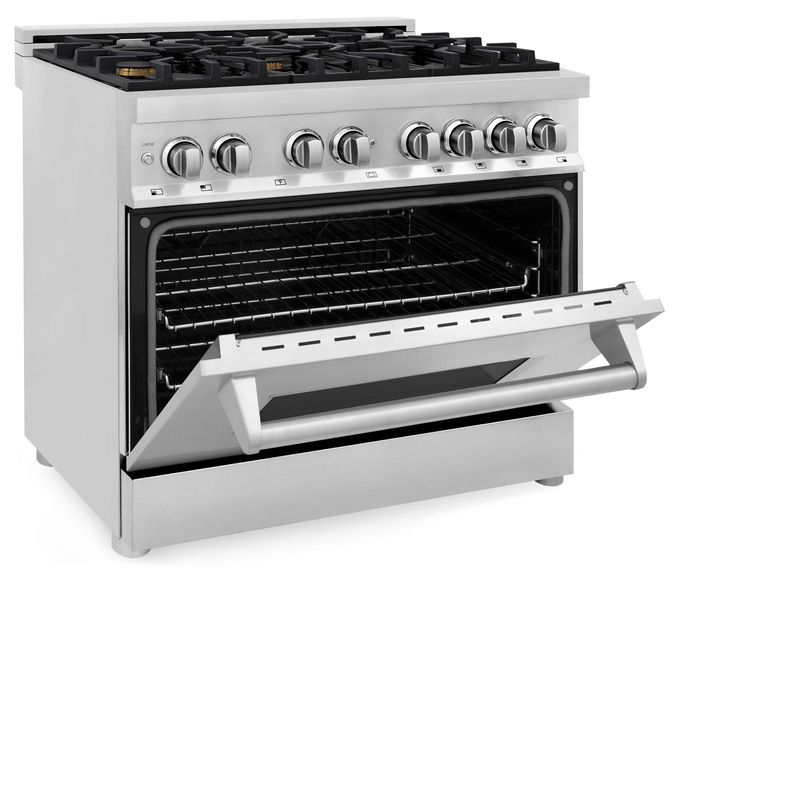 Luxury isn't meant to be desired - it's meant to be attainable. The ZLINE 36 in. 4.6 cu. ft. Legacy Dual Fuel Range with Gas Cooktop and Electric Convection Oven in Stainless Steel with 6 Brass Burners (RA-BR-36) pairs a powerful gas cooktop with 6 Italian-crafted brass burners and an electric convection oven with a Landscape oven door window design. With innovative features designed to enhance your kitchen's capability, ZLINE Legacy Dual Fuel Ranges provide a professional culinary experience by pairing unmatched performance with timeless style.