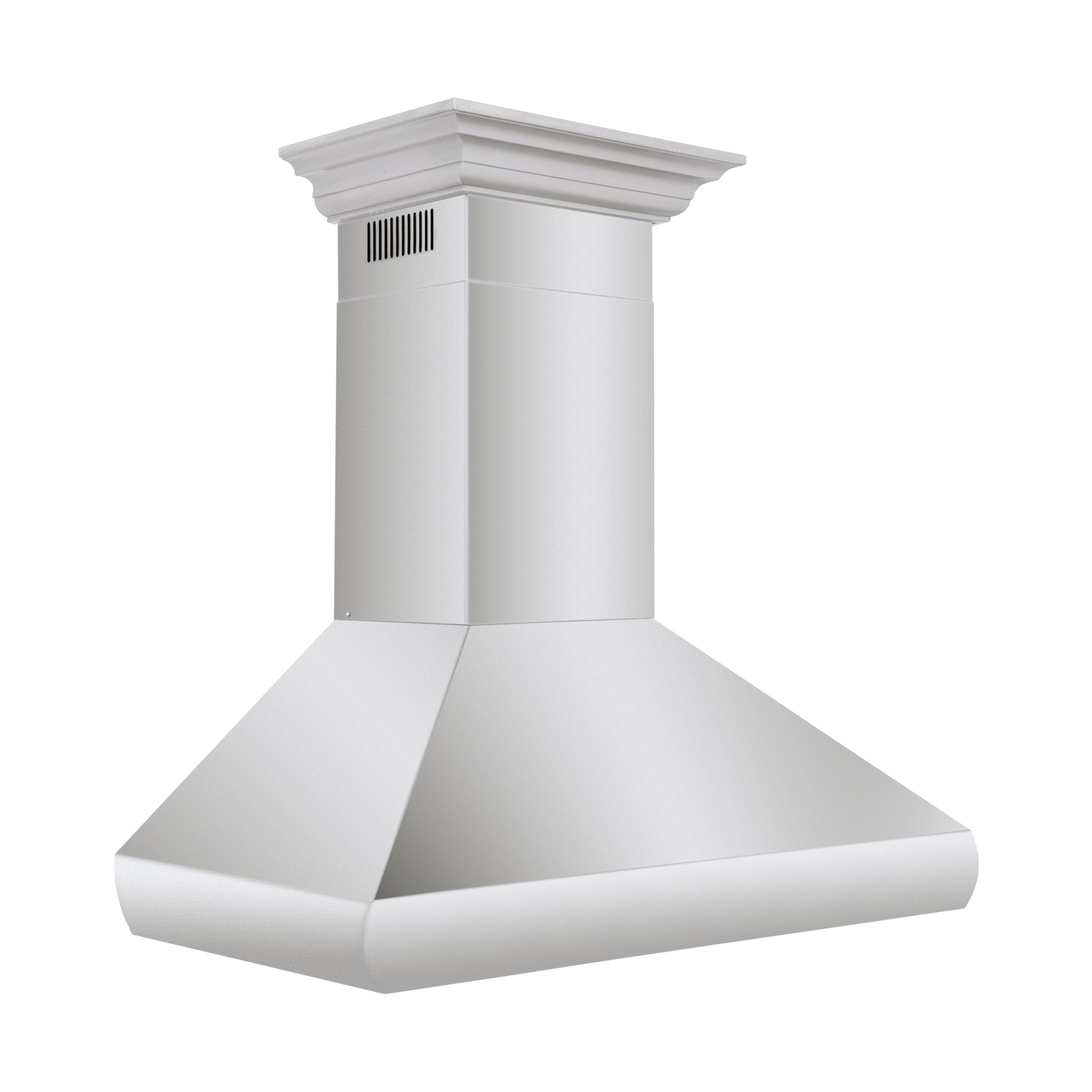 The ZLINE 587CRN-36 is a 36 in. professional wall mount stainless steel range hood with a modern design and built-to-last quality, making it a great addition to any kitchen. This hood's high-performance, 500 CFM 4-speed motor will provide all the power you need to quietly and efficiently ventilate your stove while cooking. With its classic 430 grade stainless steel, this range hood contains rust, temperature, and corrosion-resistant properties to ensure a durable vent hood that will last for years to come. Enjoy modern features, including built-in LED lighting for an illuminated culinary experience and dishwasher-safe stainless steel baffle filters for easy clean-up. This wall mount range hood has a convertible vent, so you can have a luxury range hood whether you need a ducted or ductless option. Enjoy easy installation and an easy recirculating conversion process. ZLINE Kitchen and Bath stands by all products with its manufacturer parts warranty. The 587CRN-36 ships next business day when in stock.