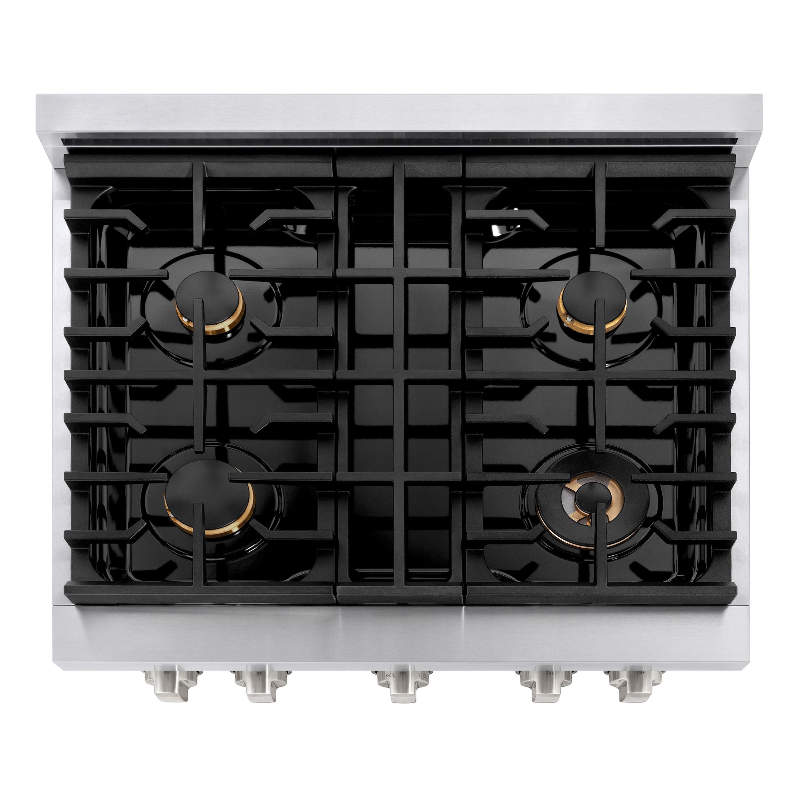 Luxury isn't meant to be desired - it's meant to be attainable. Designed in Lake Tahoe, USA, the ZLINE 4 Brass Burners (BRASSBR-30) provides a professional culinary experience by pairing unmatched performance with timeless style. Achieve ZLINE Attainable Luxury' excellence with innovative features designed to enhance your kitchen's capability.