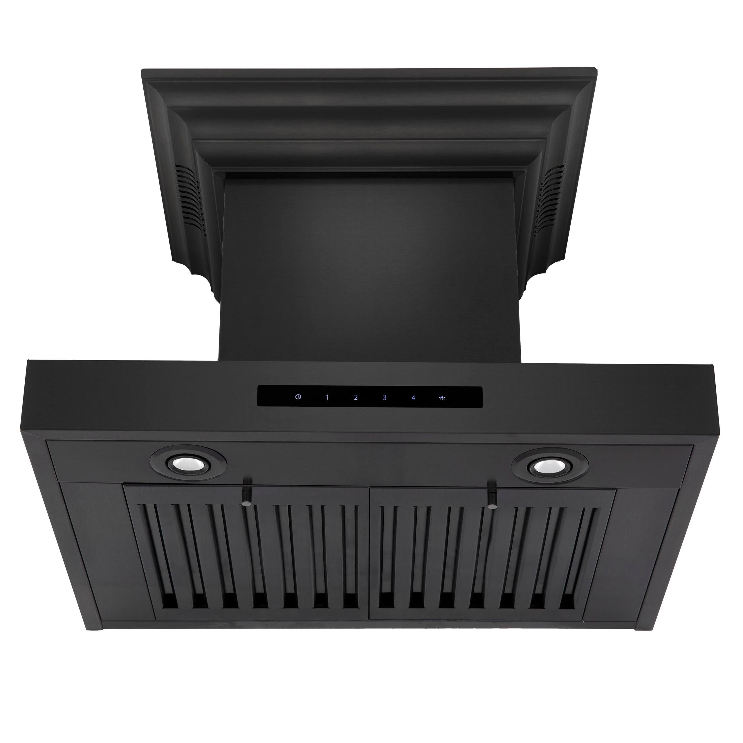 Experience ZLINE Attainable Luxury' with industry-leading kitchen and bath products that provide an elevated luxury experience, all designed in Lake Tahoe, USA. The Wall Mount Range Hood with Built-in ZLINE CrownSound' Bluetooth Speakers transforms the seamless, elegant ceiling transition of ZLINE Range Hoods into a high-fidelity, wireless sound system, creating the perfect entertainment area for you and your guests. With ZLINE CrownSound', you can pair your smart device up to 50 feet away for optimal access and control of audio in your kitchen. The high-performance 400 CFM, 4-speed motor provides all the power you need to quietly and efficiently ventilate your kitchen while hosting kitchen dance parties or listening to your favorite podcasts. With its classic 430 grade black stainless steel, this range hood contains rust, temperature, and corrosion-resistant properties to ensure a durable vent hood that will last for years to come. Enjoy modern features, including built-in LED lighting for an illuminated culinary experience and dishwasher-safe stainless steel baffle filters for easy clean-up. This wall mount mount range hood has a ducted vent with easy, simple installation. Achieve a functional, modern upgrade that is perfectly harmonized in your favorite ZLINE Range Hood designs. We continue to revolutionize the industry by providing our customers with ZLINE Attainable Luxury'. ZLINE proudly stands by the longevity and durability of their range hoods alongside its 3 year manufacturer parts warranty.