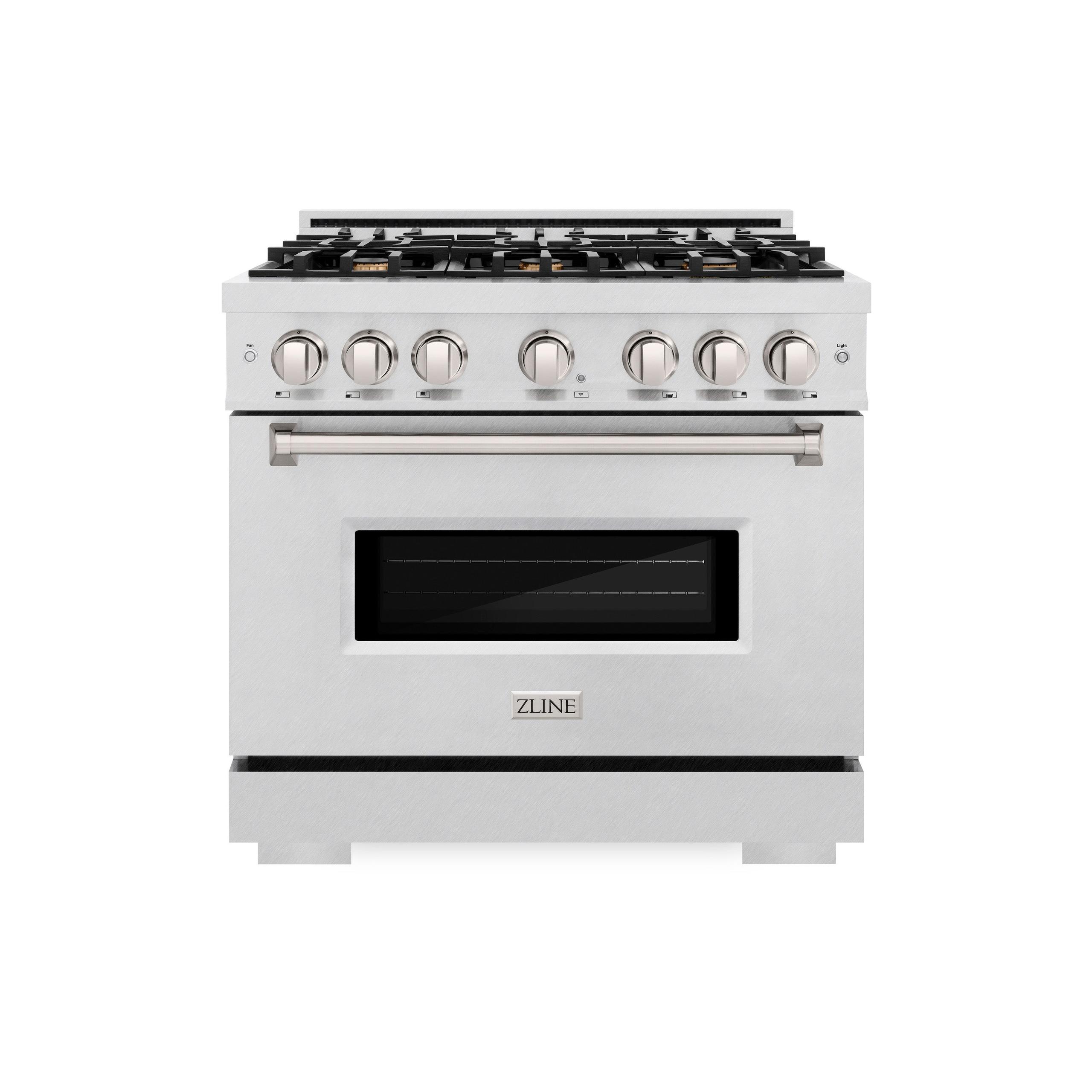 Luxury isn't meant to be left desired'it's meant to be attainable. The ZLINE 36 in. 5.2 cu. ft. Classic Gas Range with Convection Gas Oven in Satin Stainless Steel with 6 Brass Burners (CGRS-BR-36) combines the elegance of a hand-finished porcelain gas cooktop with 6 Italian-made brass auto-reignition burners, a gas convection oven with an energy-efficient cooling fan to ensure quiet operation, and a Landscape oven door window design allowing you to master every meal. With a modern, timeless style and refined functionality, ZLINE Classic Gas Ranges are masterfully crafted to deliver an elevated culinary experience.