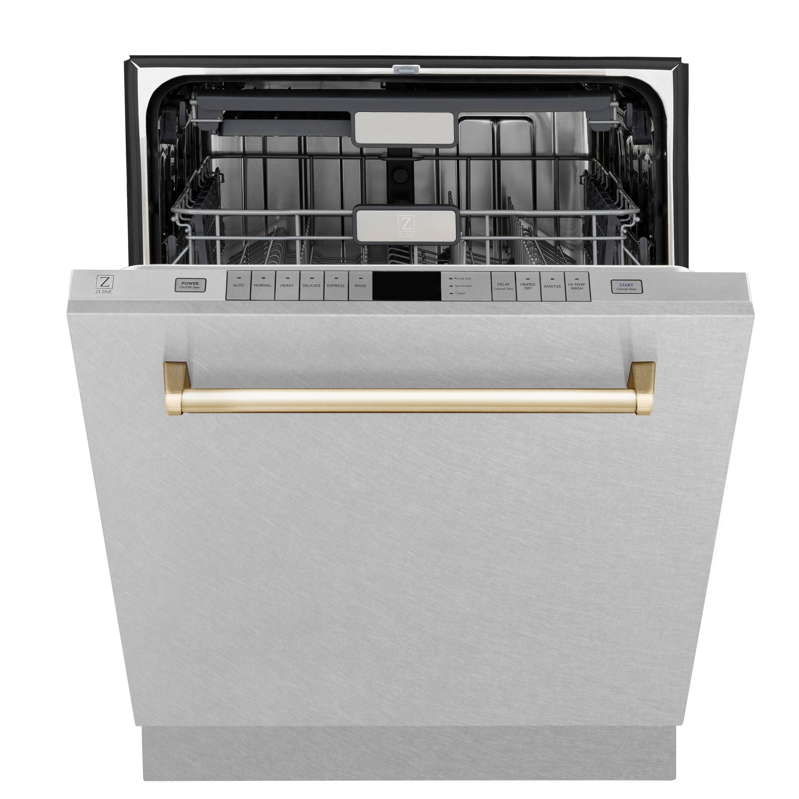 Luxury isn't meant to be desired - it's meant to be attainable. The ZLINE Autograph Edition 24" Monument Series 3rd Rack Top Touch Control Tall Tub Dishwasher in Satin Fingerprint Resistant Stainless Steel with Polished Gold Handle, 45dBa (DWMTZ-SN-24-G) utilizes innovative DuraWash' technology and powerful energy-efficient performance to achieve optimal results. Encompassing limitless beauty, precision, and quality, the Autograph Edition Series creates a luxury look that will transform your space. Achieve ZLINE Attainable Luxury' excellence with innovative features designed to enhance your kitchen's capability with timeless style.