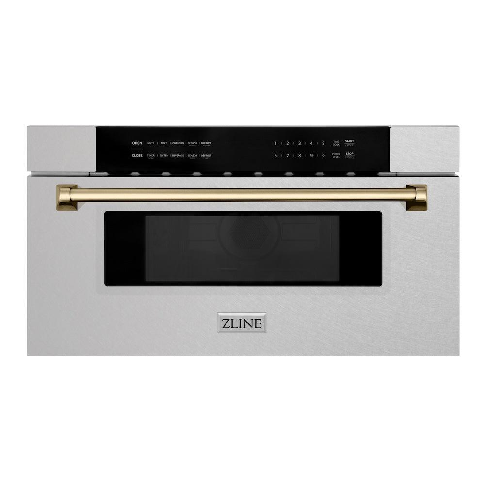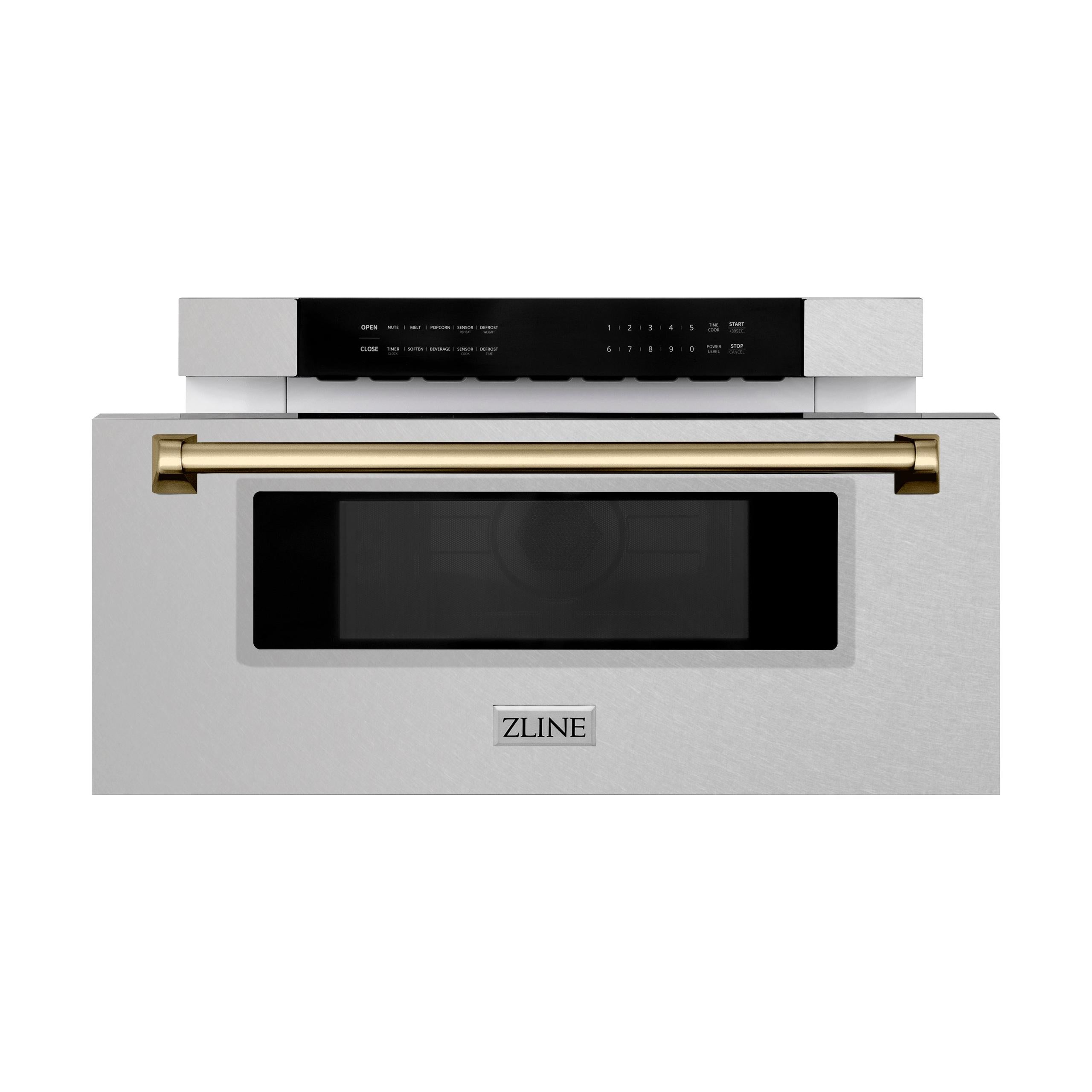 Luxury isn't meant to be desired - it's meant to be attainable. Inspired by Lake Tahoe, USA, the ZLINE Autograph Edition 30" 1.2 cu. ft. Built-In Microwave Drawer in Satin Fingerprint Resistant Stainless Steel with Champagne Bronze Accents (MWDZ-30-SS-CB) provides a professional culinary experience by pairing unmatched performance with timeless style. Achieve ZLINE Attainable Luxury' excellence with innovative features designed to enhance your kitchen's capability.