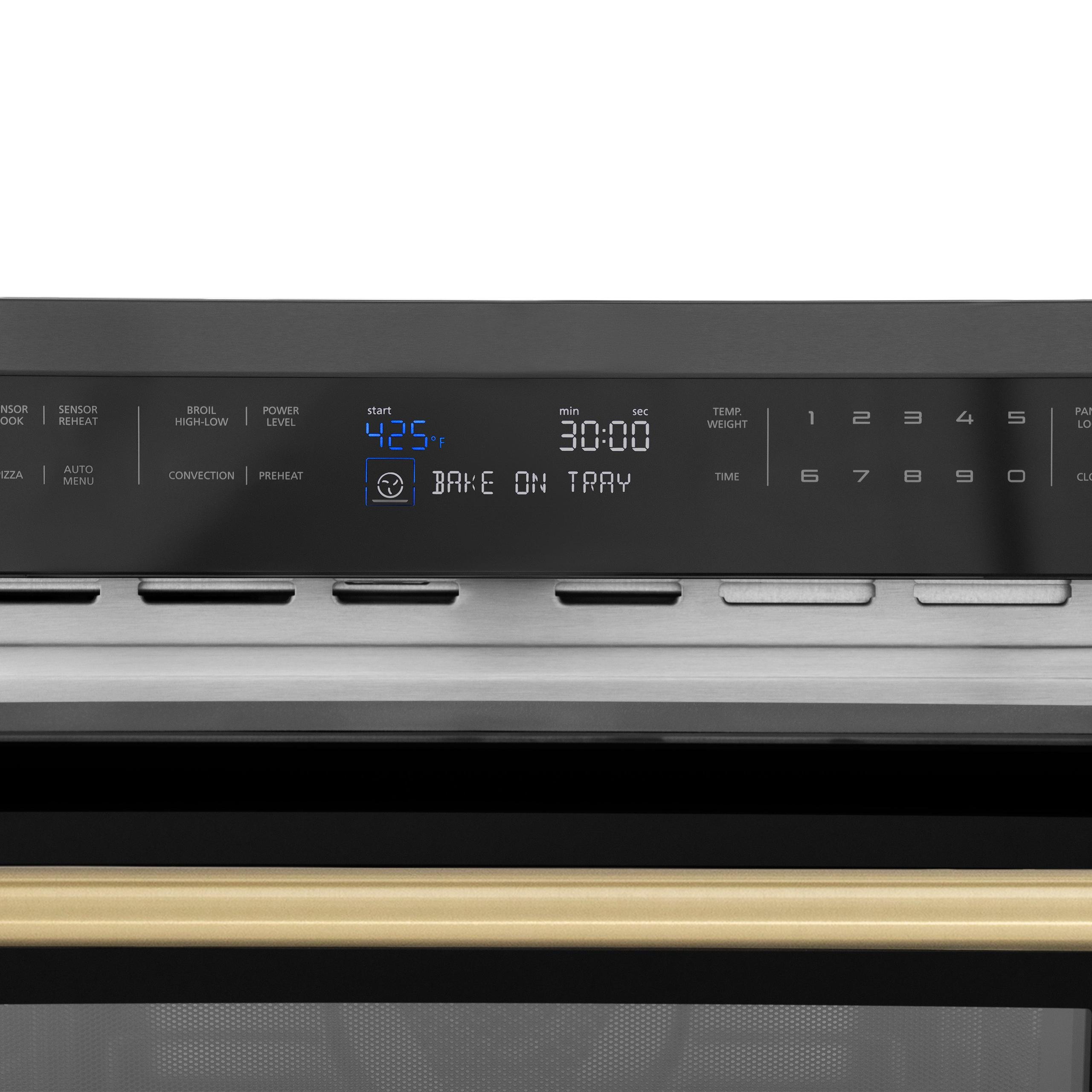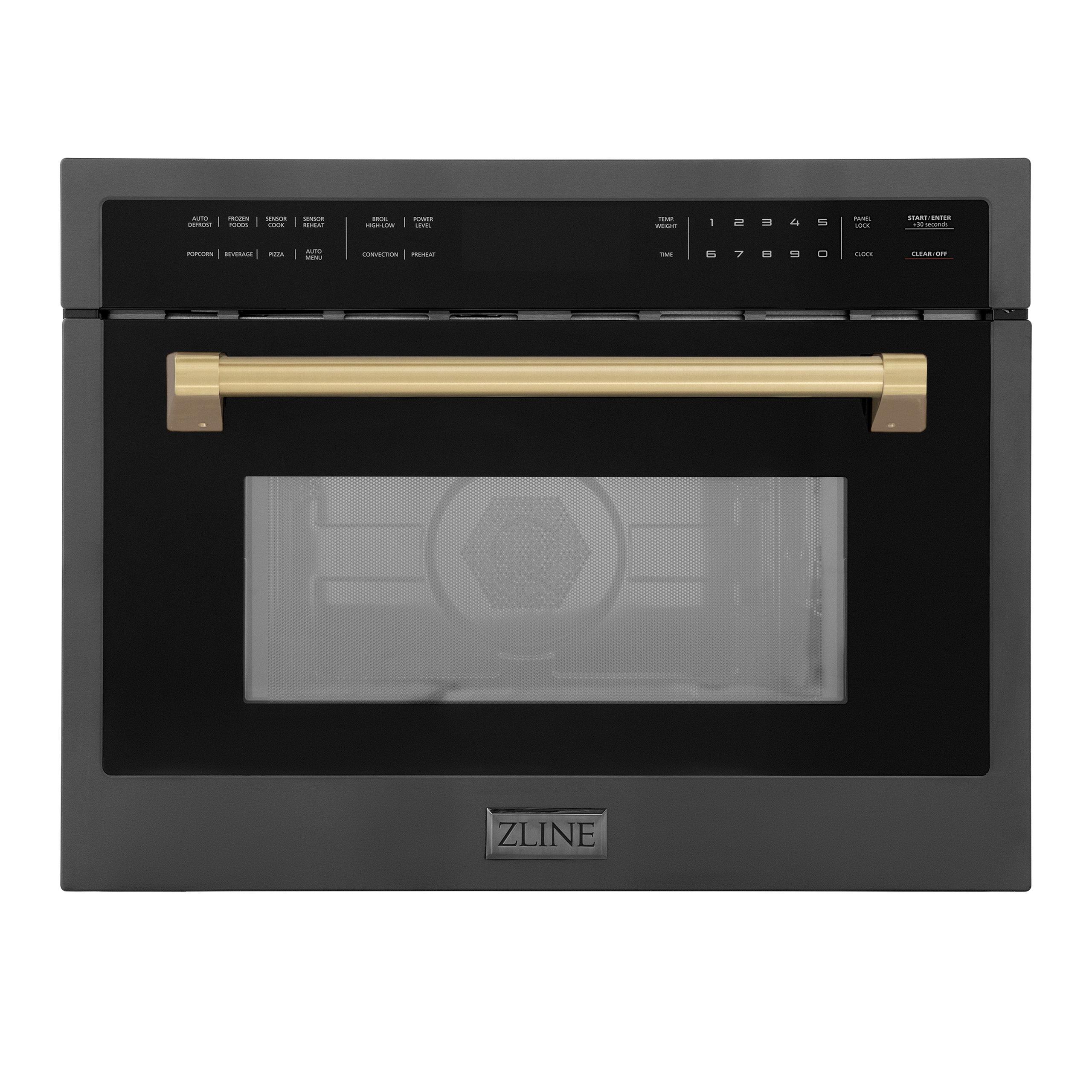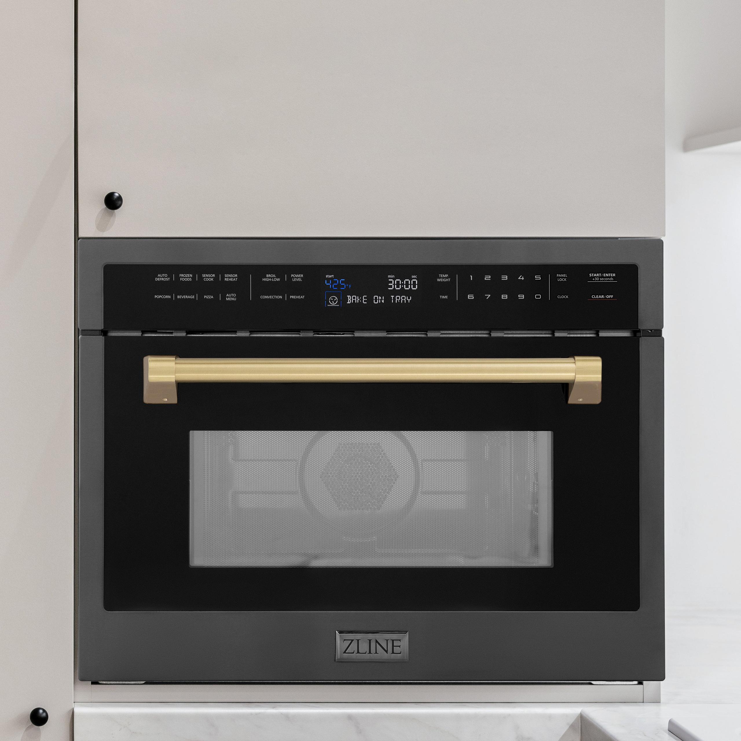 Luxury isn't meant to be desired - it's meant to be attainable. Designed in Lake Tahoe, USA, the ZLINE Autograph Edition 24" 1.6 cu ft. Built-in Convection Microwave Oven in Black Stainless Steel and Champagne Bronze Accents (MWOZ-24-BS-CB) provides a professional culinary experience by pairing unmatched performance with timeless style. Achieve ZLINE Attainable Luxury' excellence with innovative features designed to enhance your kitchen's capability.