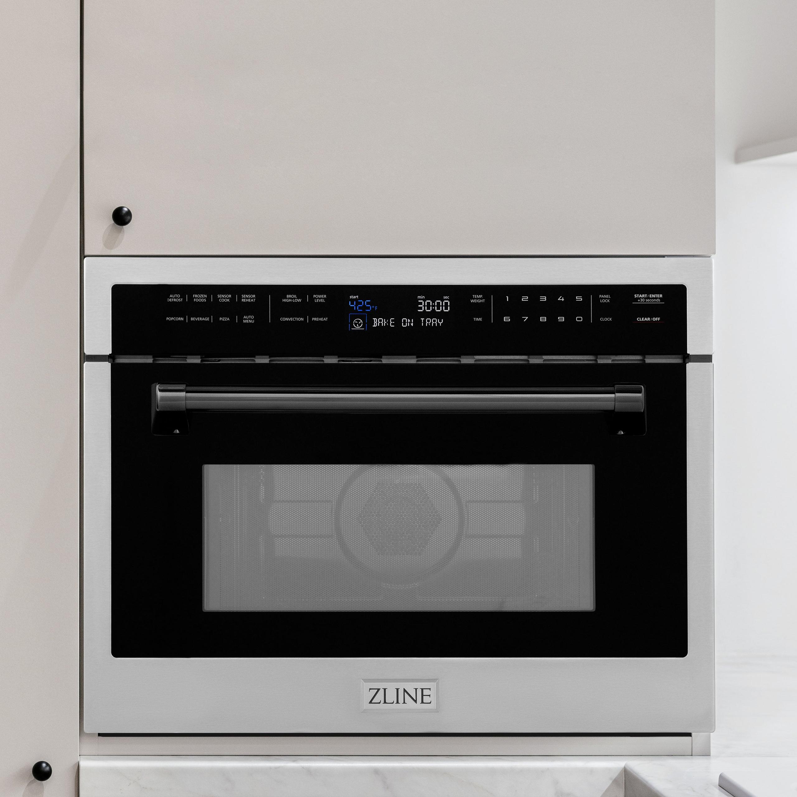 Luxury isn't meant to be desired - it's meant to be attainable. Designed in Lake Tahoe, USA, the ZLINE Autograph Edition 24" 1.6 cu ft. Built-in Convection Microwave Oven in Stainless Steel and Matte Black Accents (MWOZ-24-MB) provides a professional culinary experience by pairing unmatched performance with timeless style. Achieve ZLINE Attainable Luxury' excellence with innovative features designed to enhance your kitchen's capability.