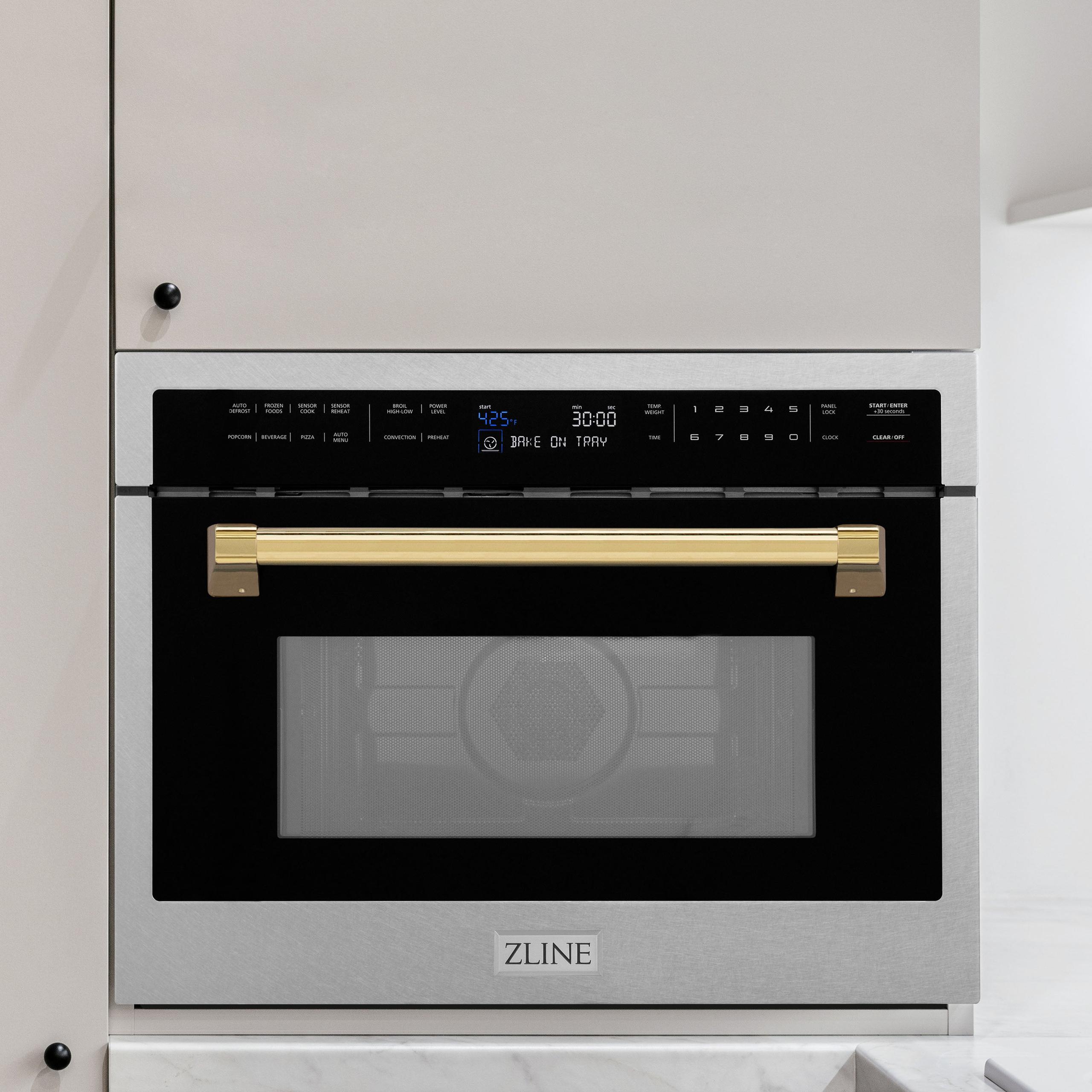 Luxury isn't meant to be left desired'it's meant to be attainable. The ZLINE Autograph Edition 24 in. 1.6 cu ft. Built-in Convection Microwave Oven in Satin Stainless Steel with Polished Gold Accents (MWOZ-24-SS-G) provides a professional culinary experience by pairing everyday convenience with a timeless style. Achieve ZLINE Attainable Luxury' excellence with unrivaled performance designed to enhance your kitchen's capability.